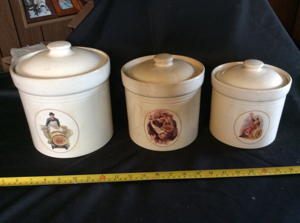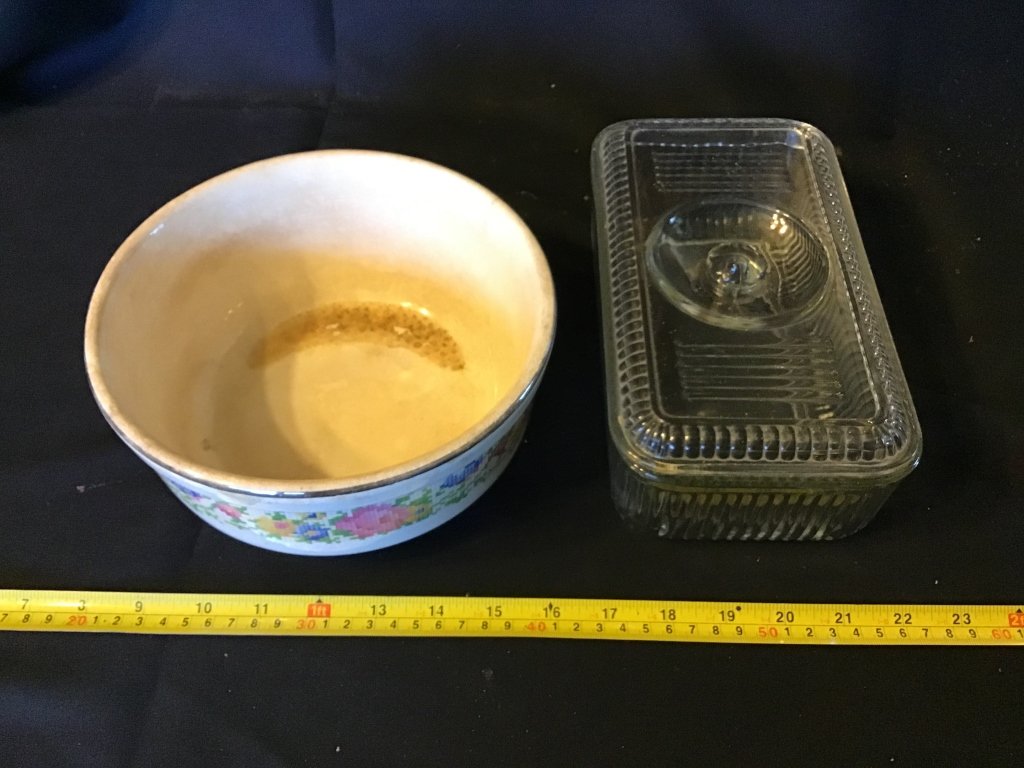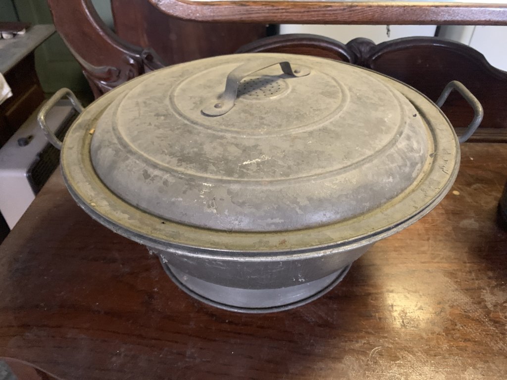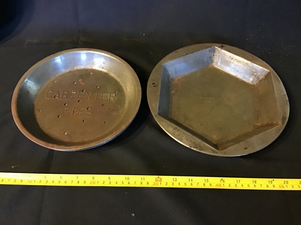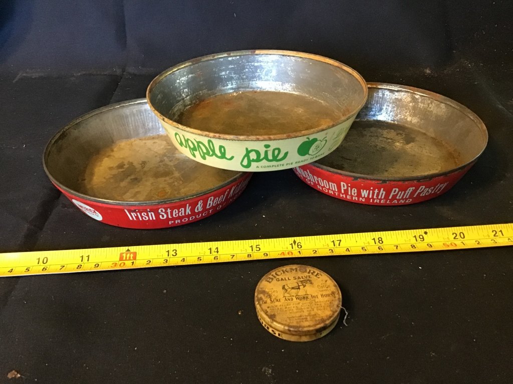 1069 Apple pie and Irish steak and kidney pie pans, Bickmore salve tin