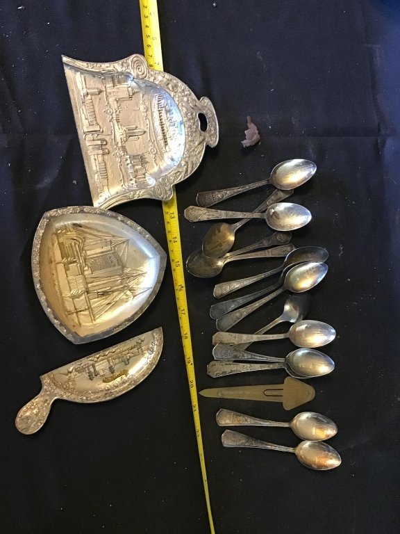 1088 Chicago century of progress collector spoons, letter opener, souvenir dustpans in crumb pans