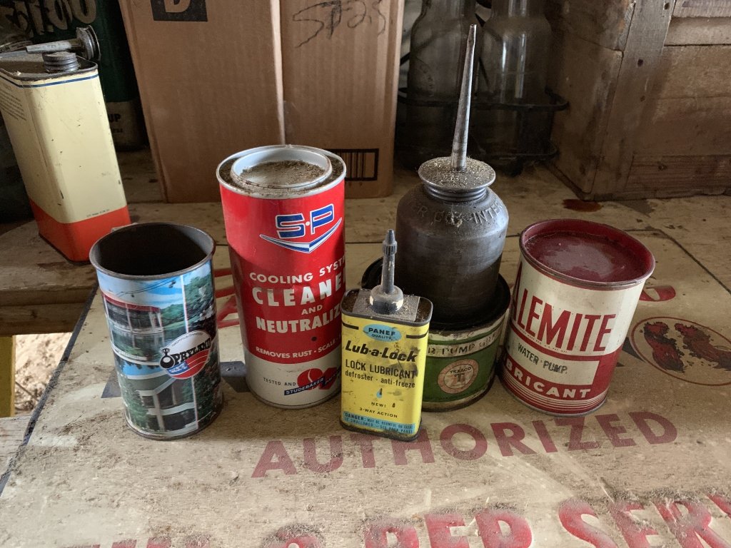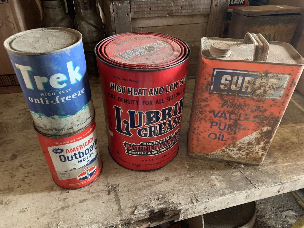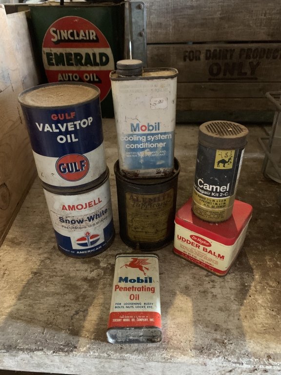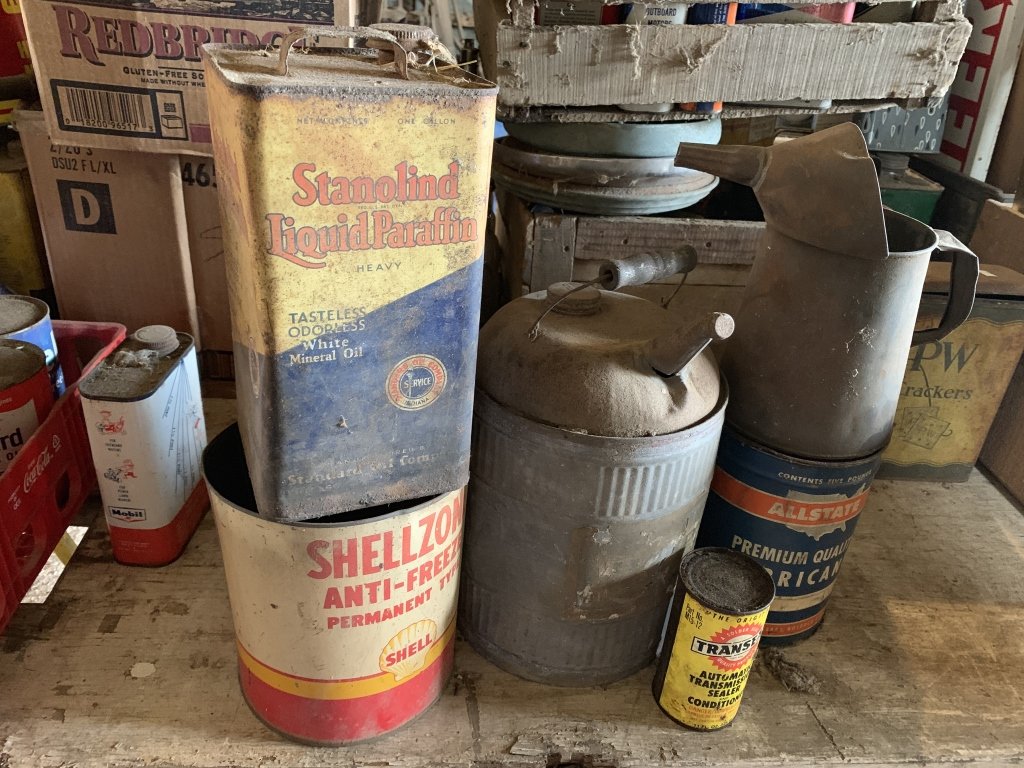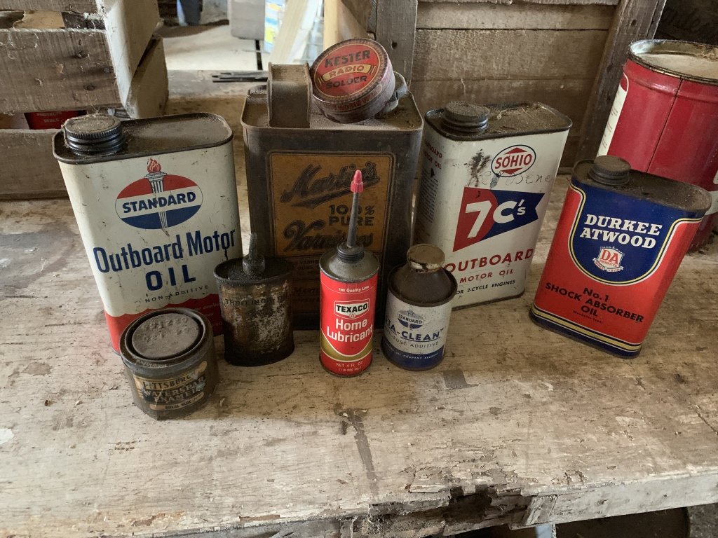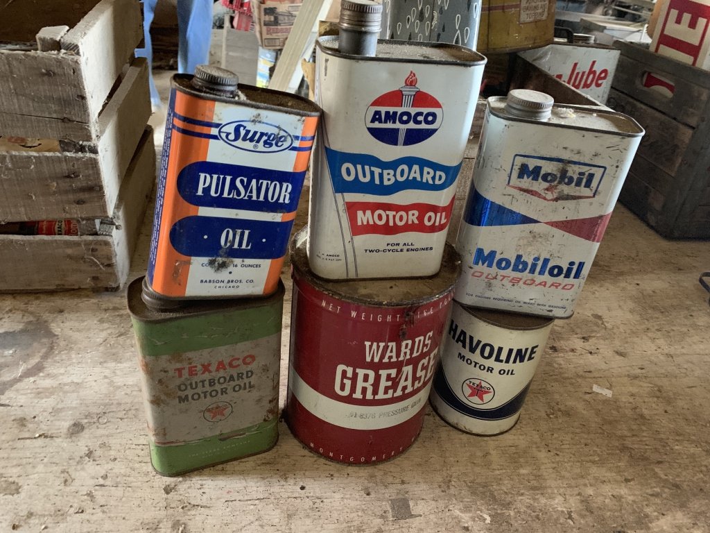 751 Vintage oil can assortment including DX Marathon Mobil, and Maytag
