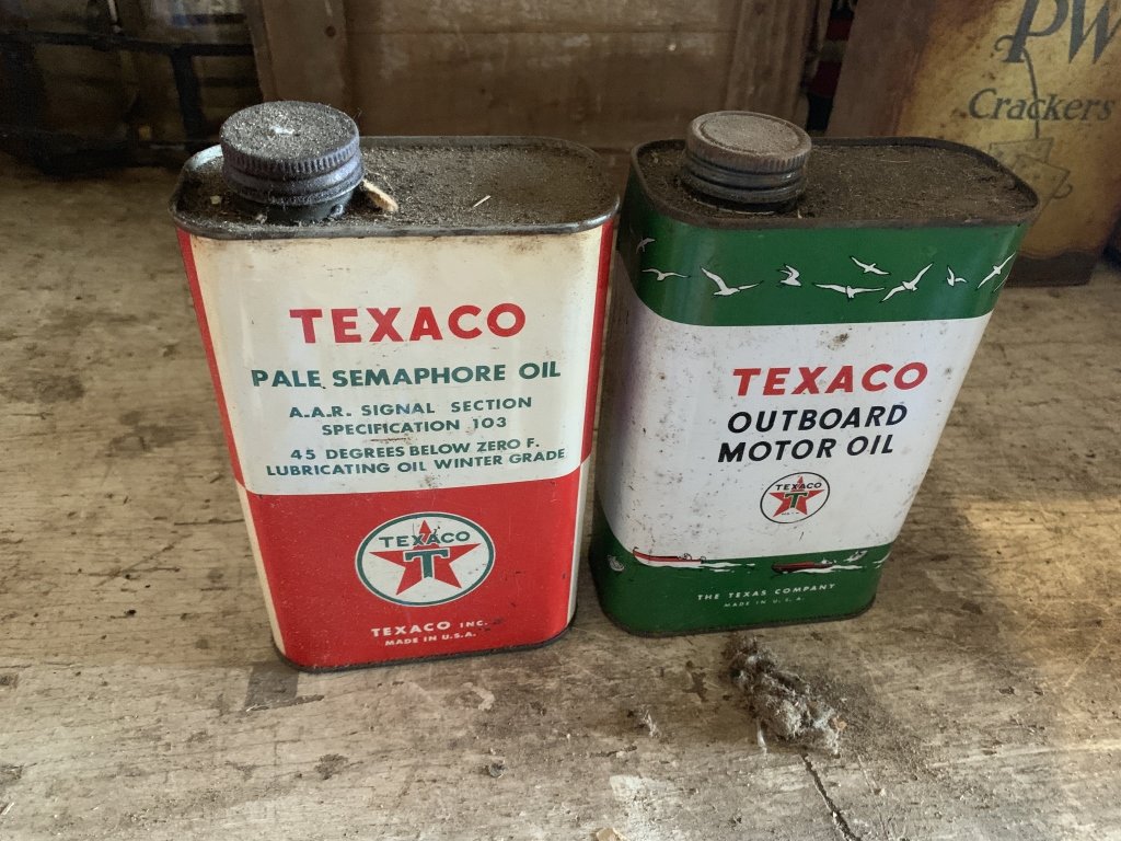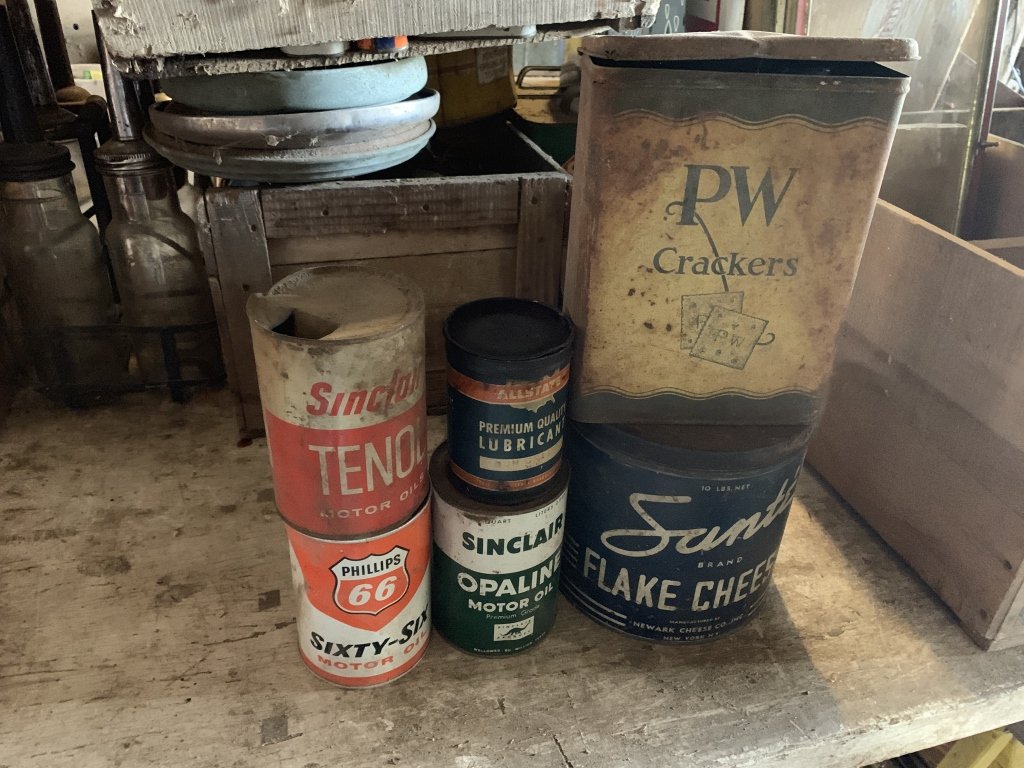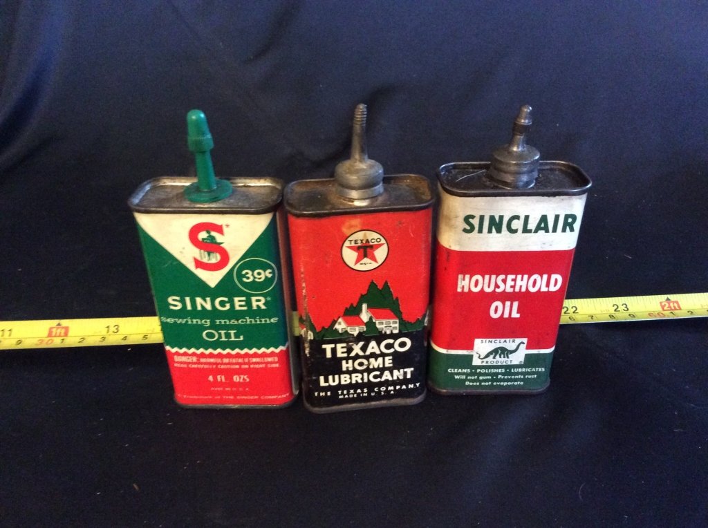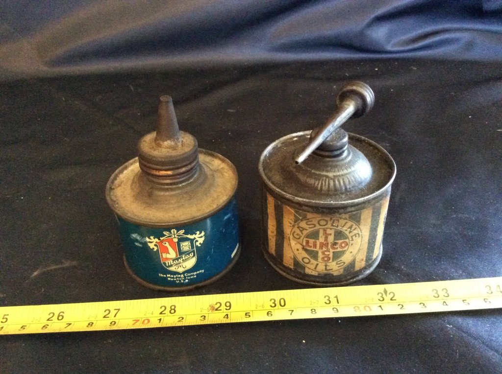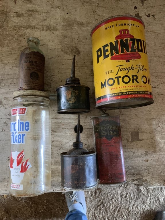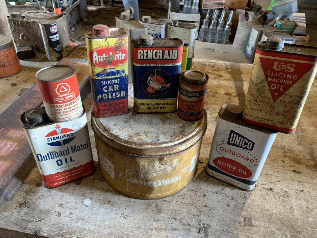 751 Vintage oil can assortment including DX Marathon Mobil, and Maytag
