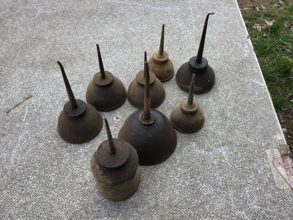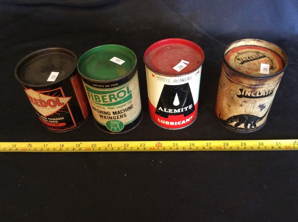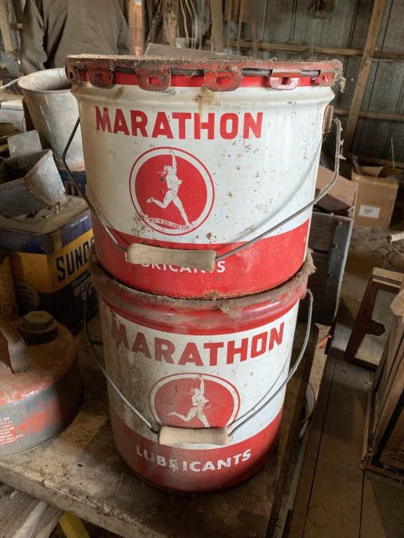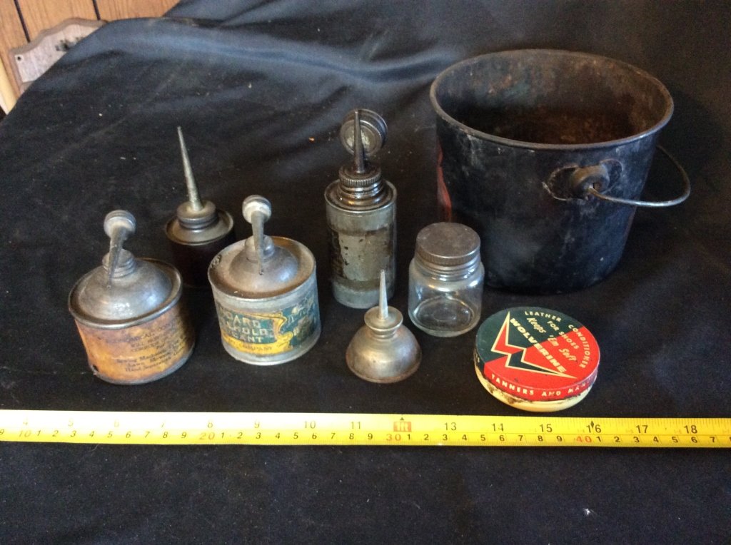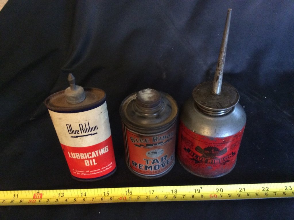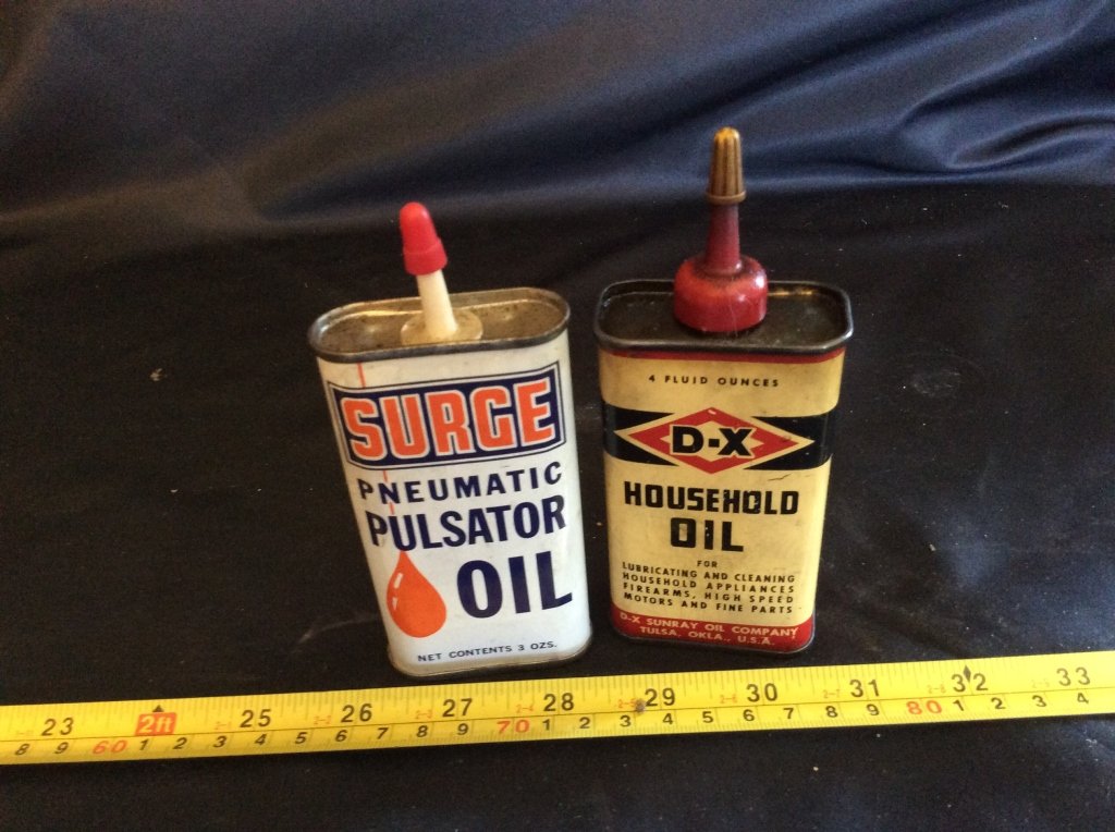 751 Vintage oil can assortment including DX Marathon Mobil, and Maytag