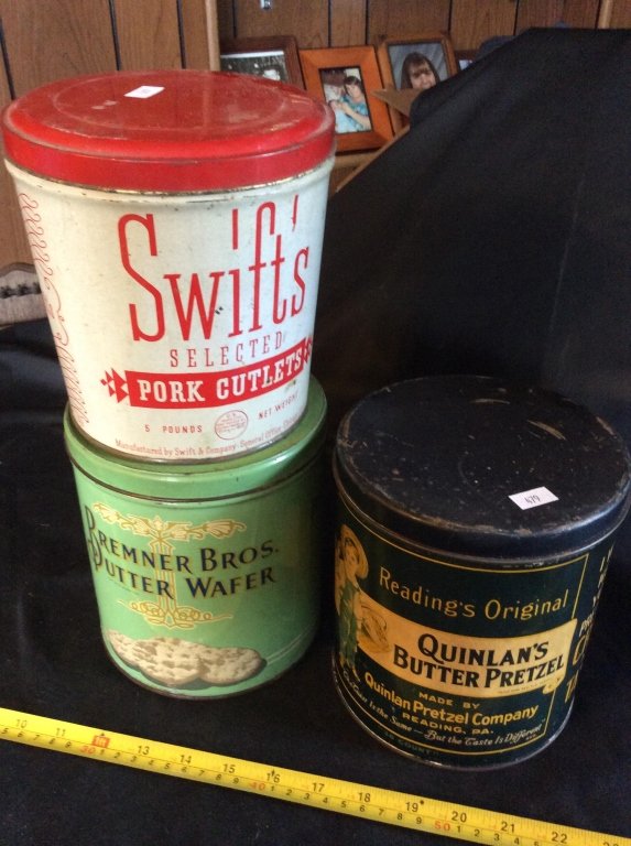 1012 Bowers old fashion peanut crunch tin, cookie cutters