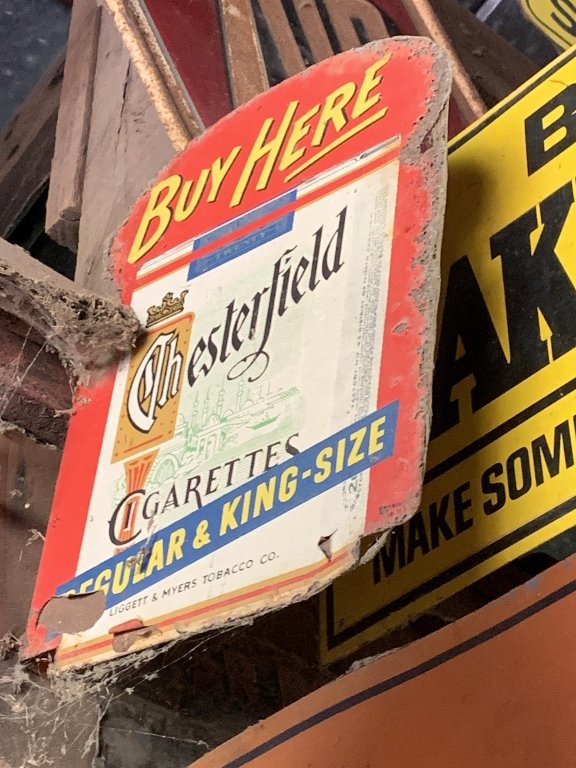 779 Chesterfield cigarette flange sign and Supercross wood seed sign