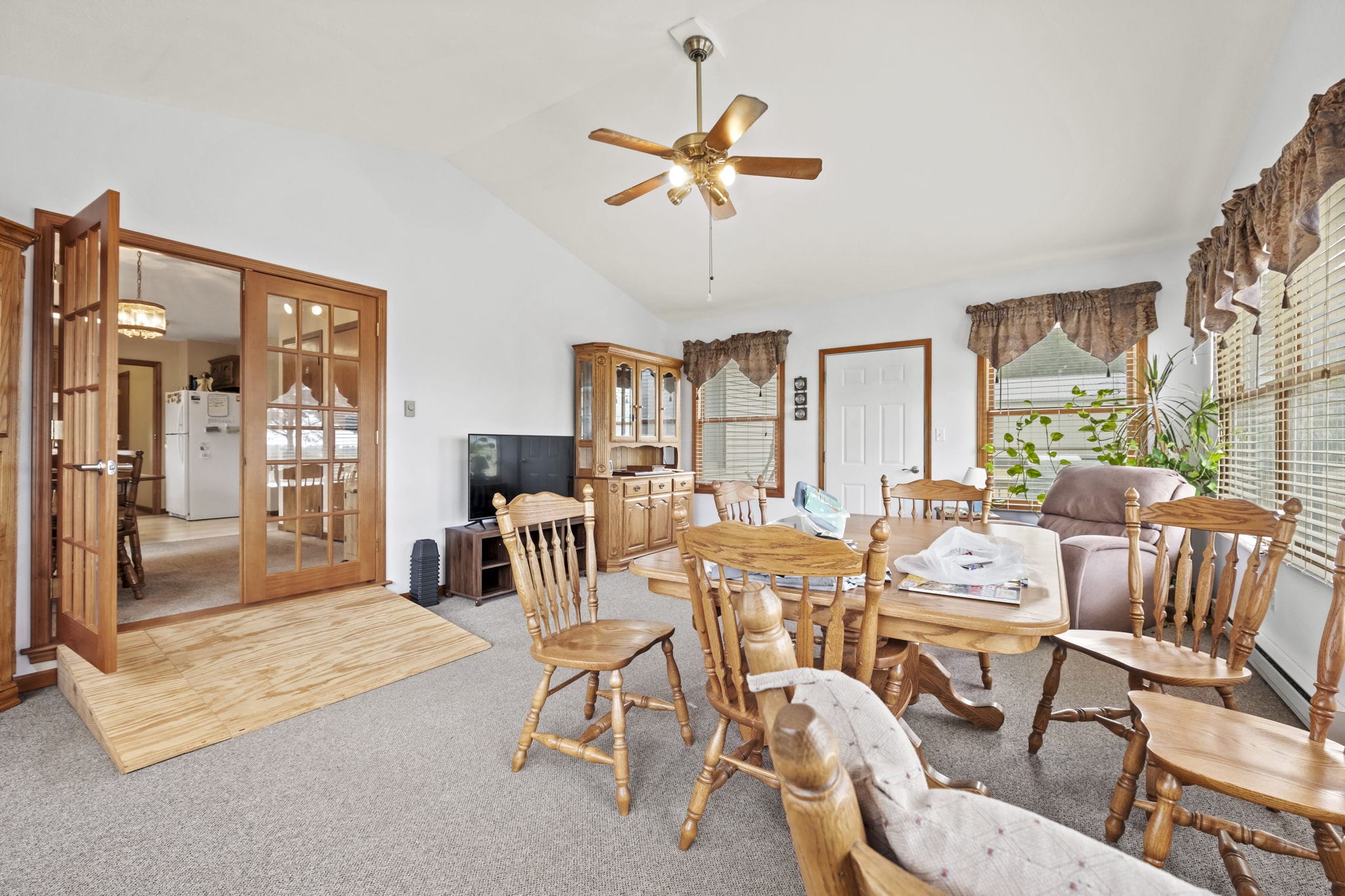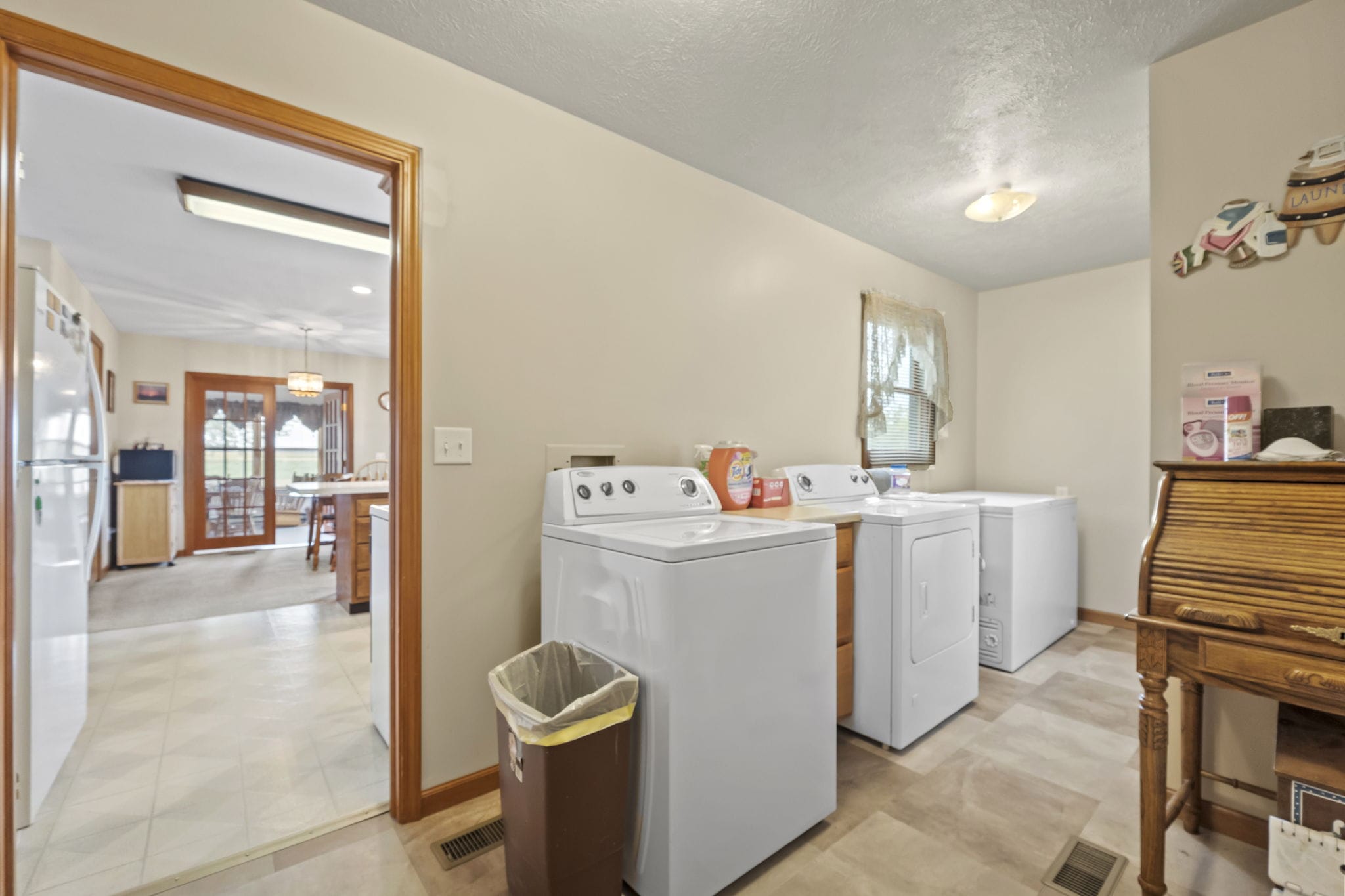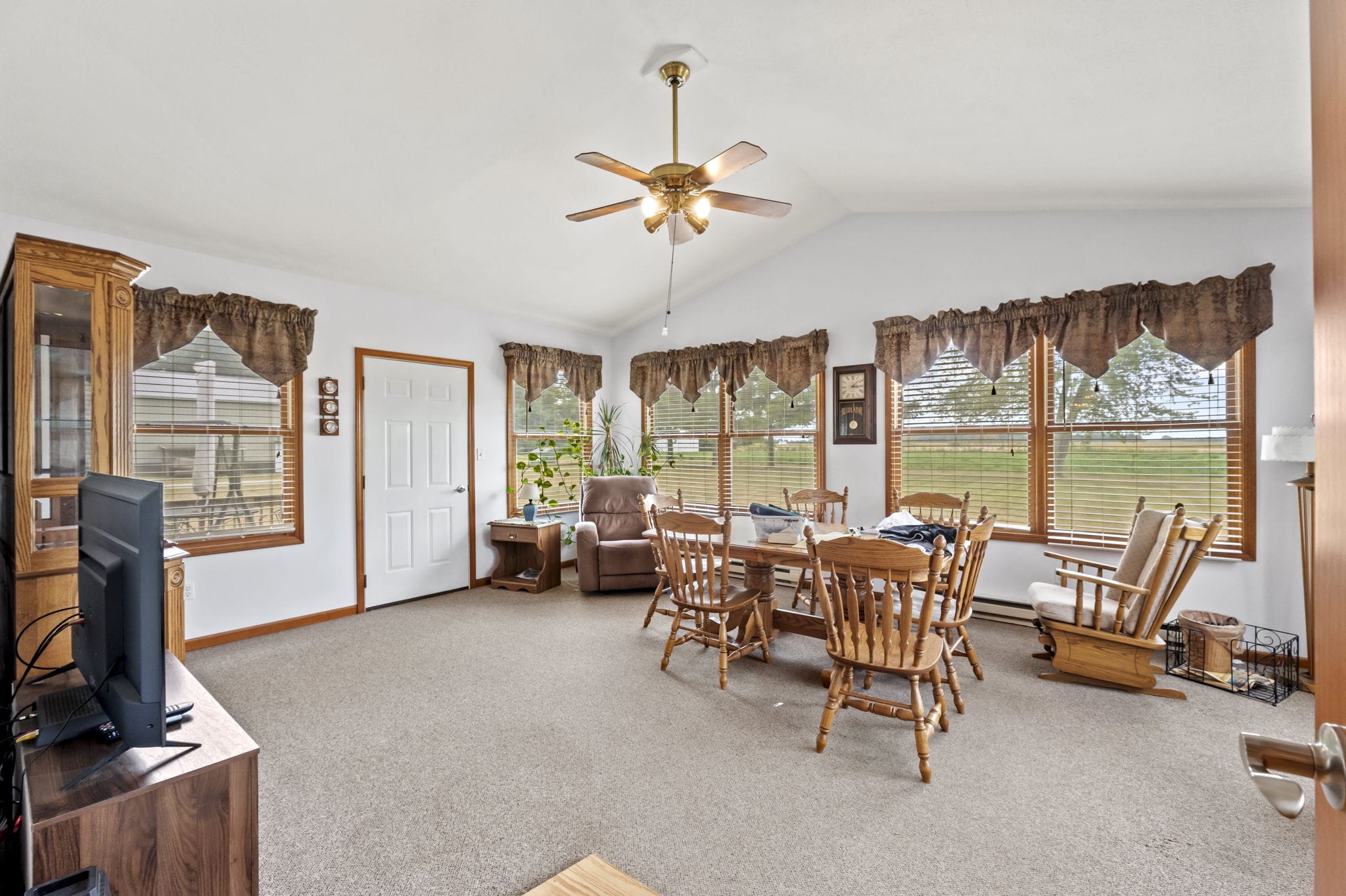 3-bedroom, 2-bath ranch home nestled on a generous 1.7+/- acres of land. This lovely residence features a master suite with an ensuite bathroom, along with 2 additional bedrooms and an extra handicap-accessible full bath conveniently located on the main floor. The heart of the home is the eat-in kitchen, which boasts a large laundry room/pantry for all your storage needs. Step into the expansive all-seasons room, perfect for enjoying the beauty of the outdoors year-round with access to the deck and backyard. The finished basement offers a large family room, ideal for entertaining or cozy family gatherings. For your convenience, the home includes a 2-car attached garage, and a new roof installed in 2023 adds peace of mind. One of the two wheelchair ramps will remain with the home, enhancing accessibility. Outside, you’ll find a remarkable 72x40 heated pole barn with drive-through capabilities, featuring 3 overhead doors, an office, and a bathroom, making it perfect for a variety of uses. The pole barn also has a separate well and septic system from the home. Don’t miss the opportunity to make this beautiful and versatile home your own!