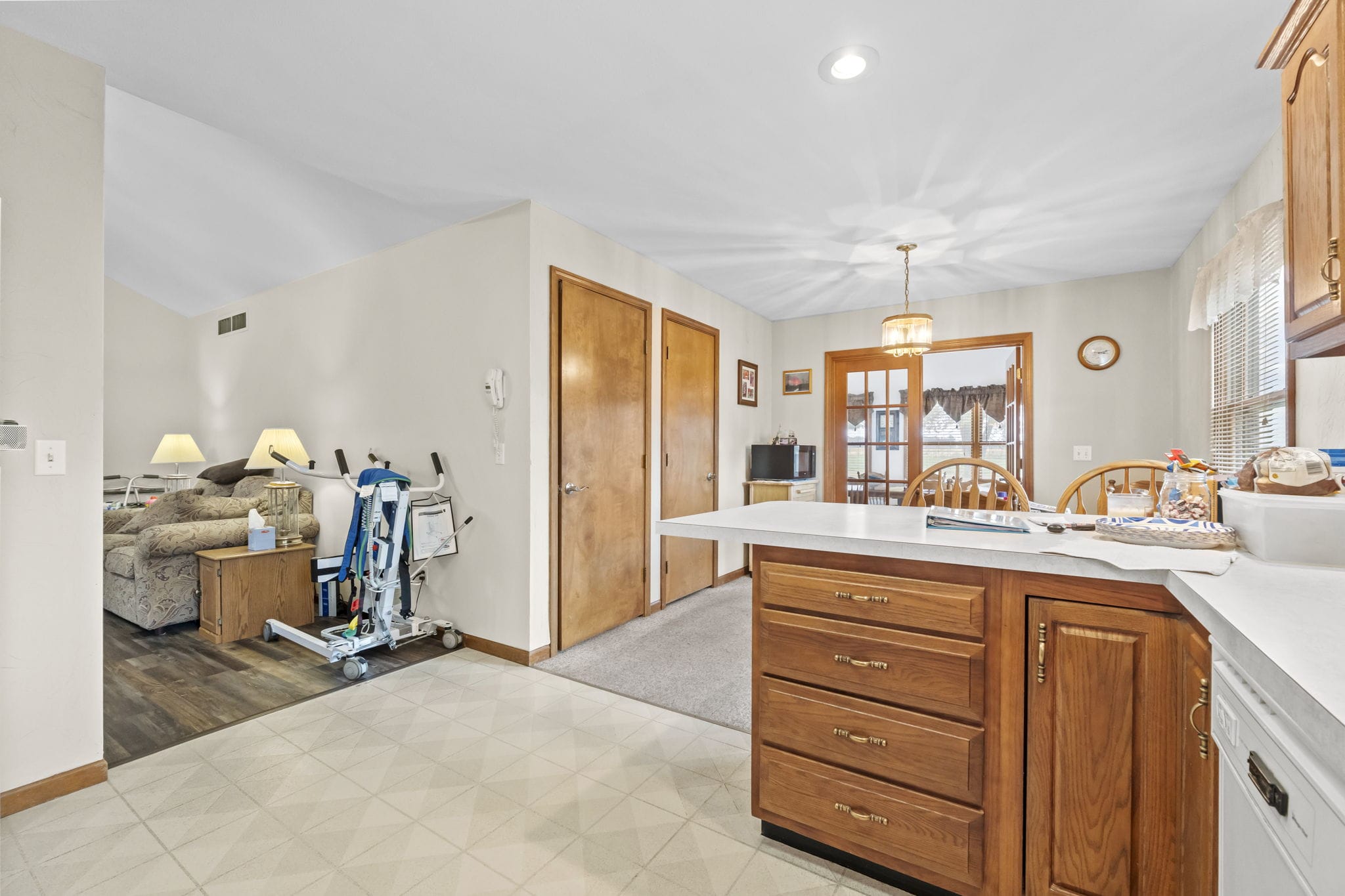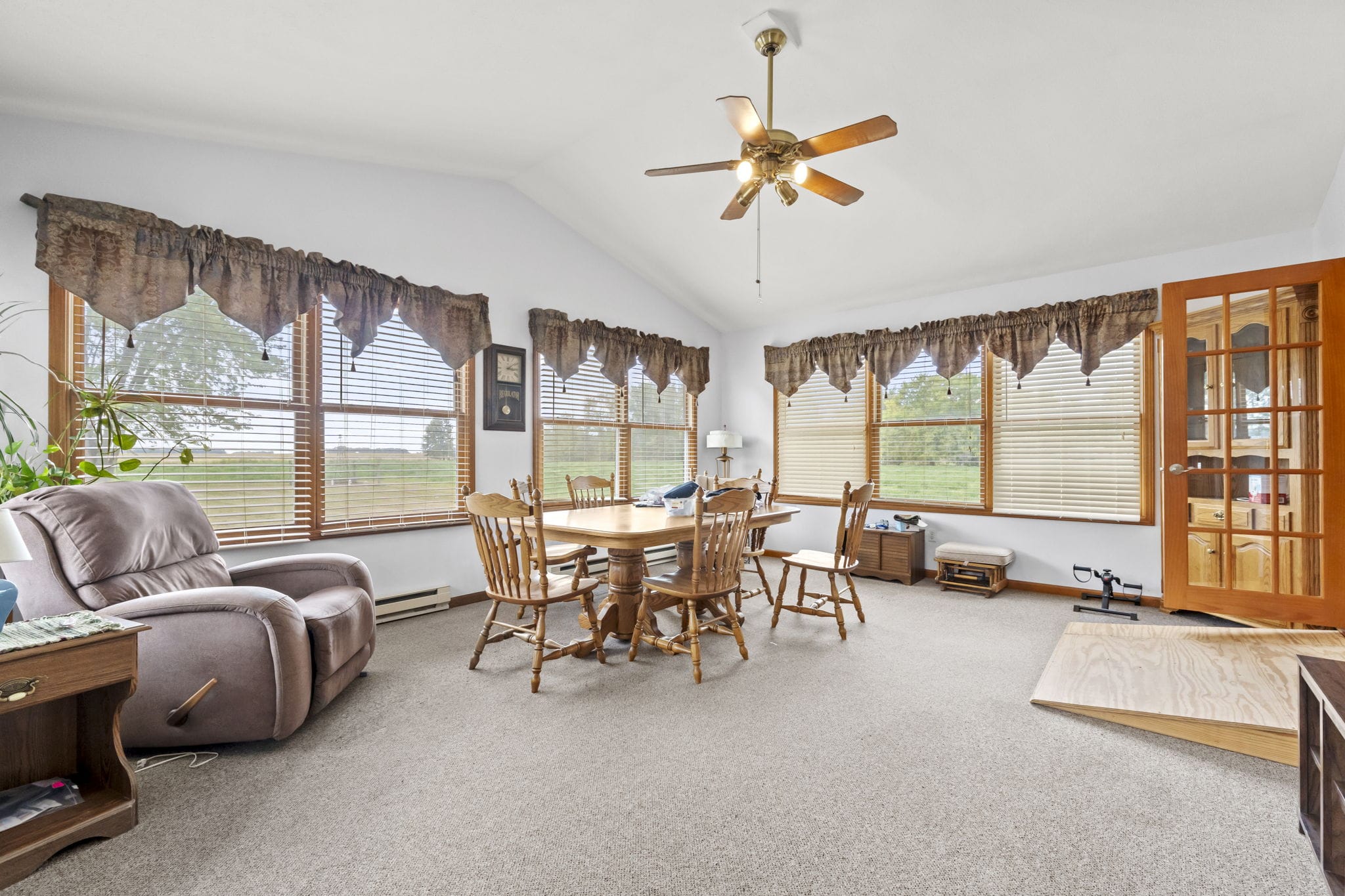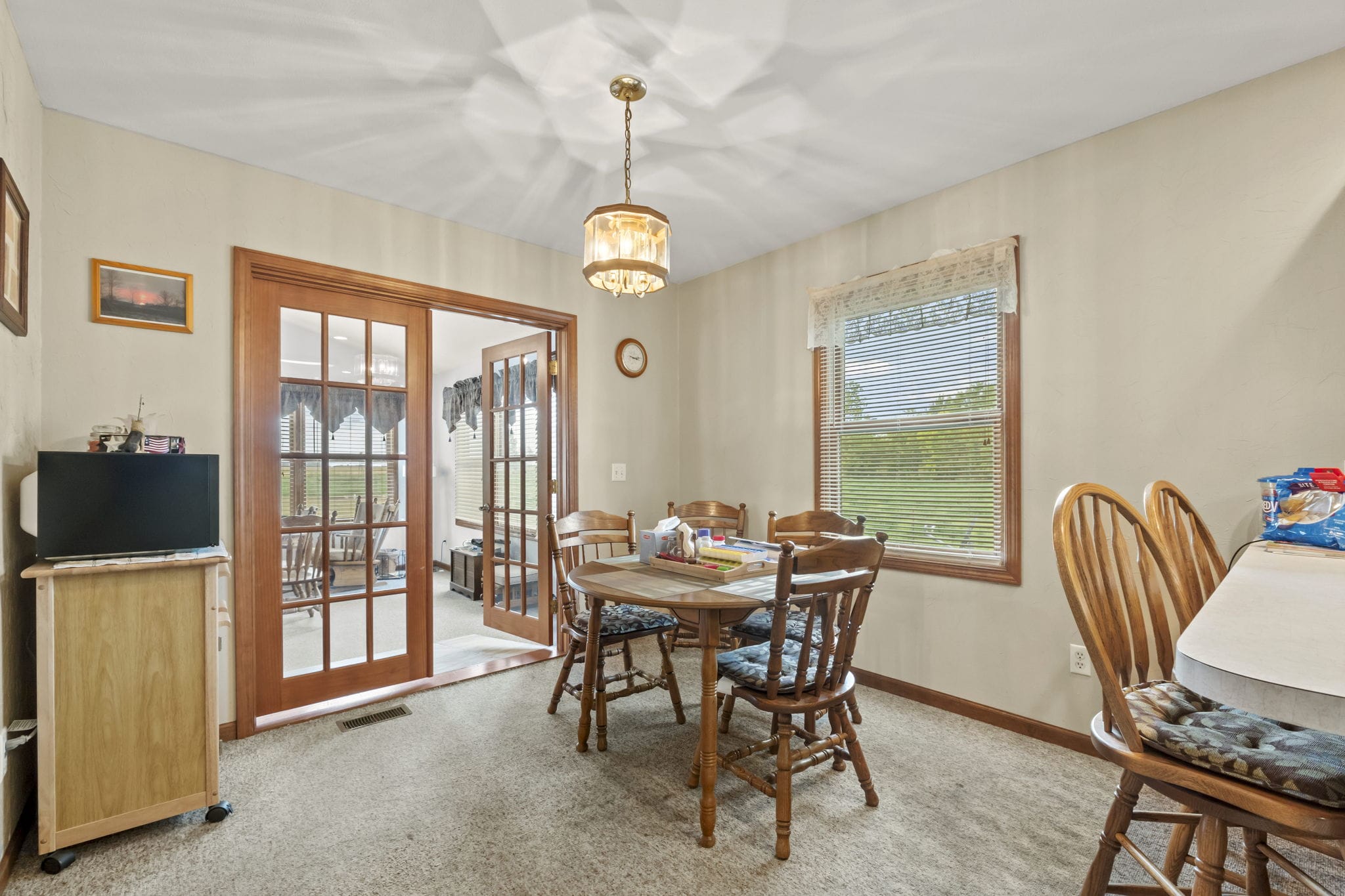 3-bedroom, 2-bath ranch home nestled on a generous 1.7+/- acres of land. This lovely residence features a master suite with an ensuite bathroom, along with 2 additional bedrooms and an extra handicap-accessible full bath conveniently located on the main floor. The heart of the home is the eat-in kitchen, which boasts a large laundry room/pantry for all your storage needs. Step into the expansive all-seasons room, perfect for enjoying the beauty of the outdoors year-round with access to the deck and backyard. The finished basement offers a large family room, ideal for entertaining or cozy family gatherings. For your convenience, the home includes a 2-car attached garage, and a new roof installed in 2023 adds peace of mind. One of the two wheelchair ramps will remain with the home, enhancing accessibility. Outside, you’ll find a remarkable 72x40 heated pole barn with drive-through capabilities, featuring 3 overhead doors, an office, and a bathroom, making it perfect for a variety of uses. The pole barn also has a separate well and septic system from the home. Don’t miss the opportunity to make this beautiful and versatile home your own!