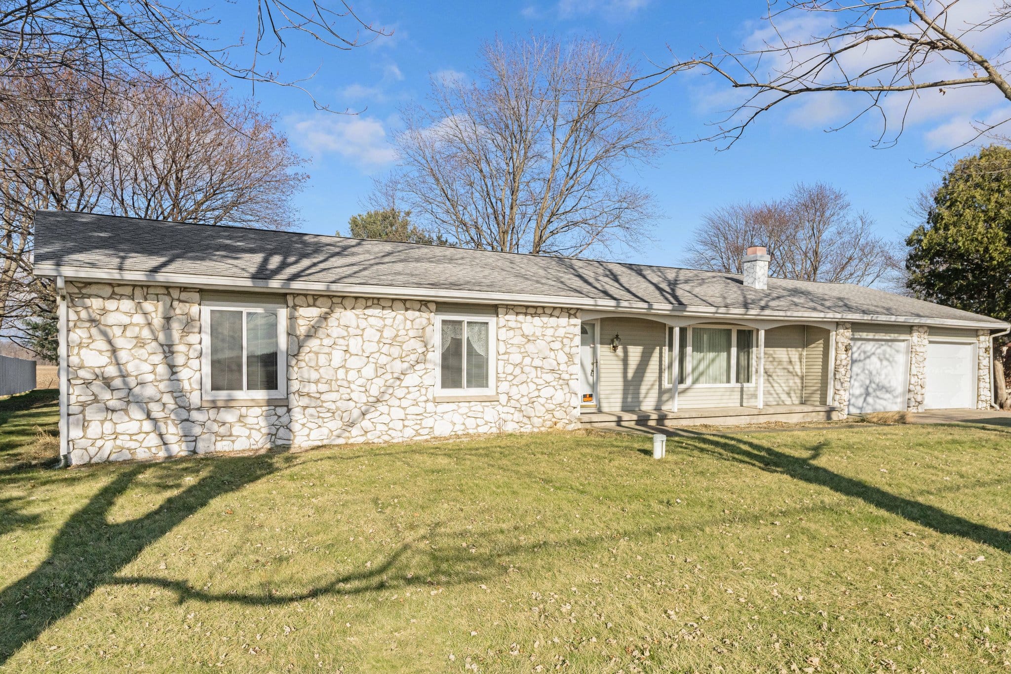 Welcome to this ranch home, featuring 3 spacious bedrooms and 2.5 baths, including a master suite with a private ensuite for your convenience. The heart of the home is the large living room, complete with a stone fireplace, perfect for cozy gatherings. The kitchen boasts a convenient breakfast bar that opens seamlessly to the dining room, which is enhanced by patio doors leading to an enclosed porch—ideal for enjoying your morning coffee or evening relaxation. The expansive backyard offers plenty of space for outdoor activities and gardening. Additional highlights include a full basement for extra storage or potential living space, and a 2-car attached garage that provides easy access and convenience. This home combines comfort and functionality, making it a perfect choice for your next chapter!