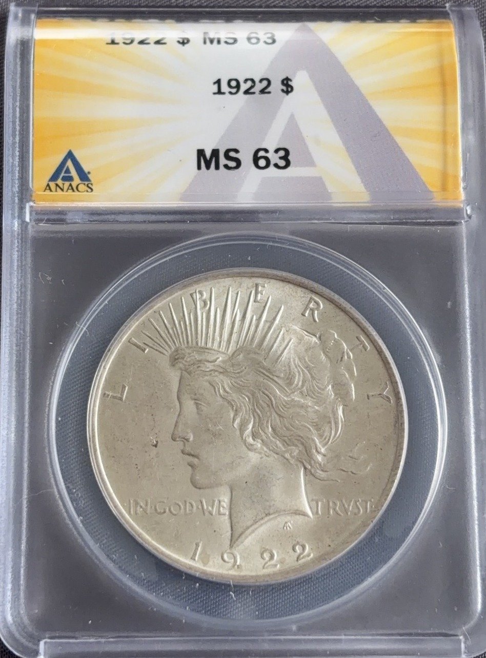 3433 1922 Peace Silver Dollar ANACS MS-63