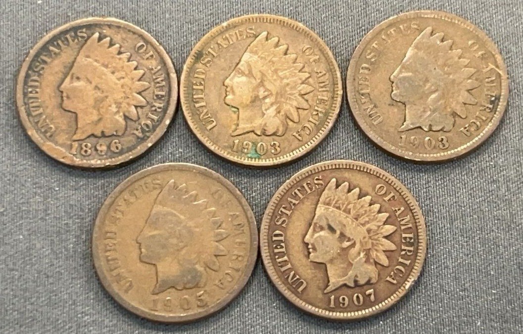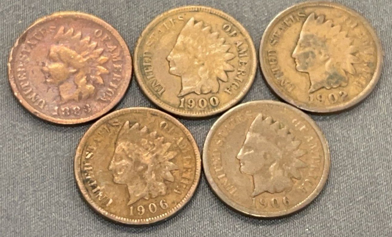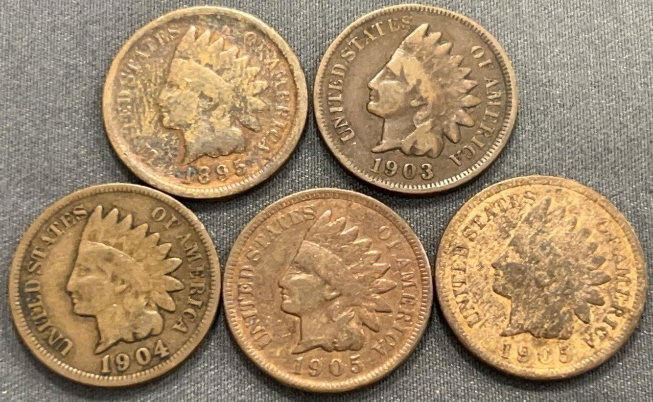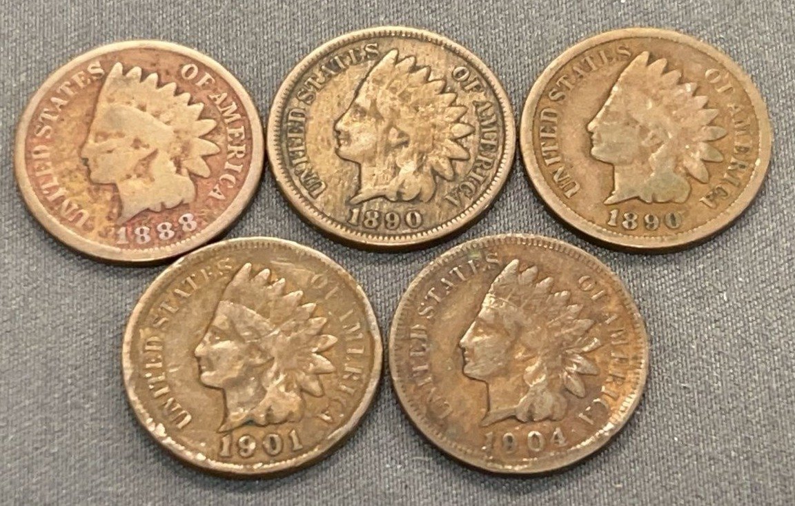 3510 5 Indian Head Pennies 1888-1904