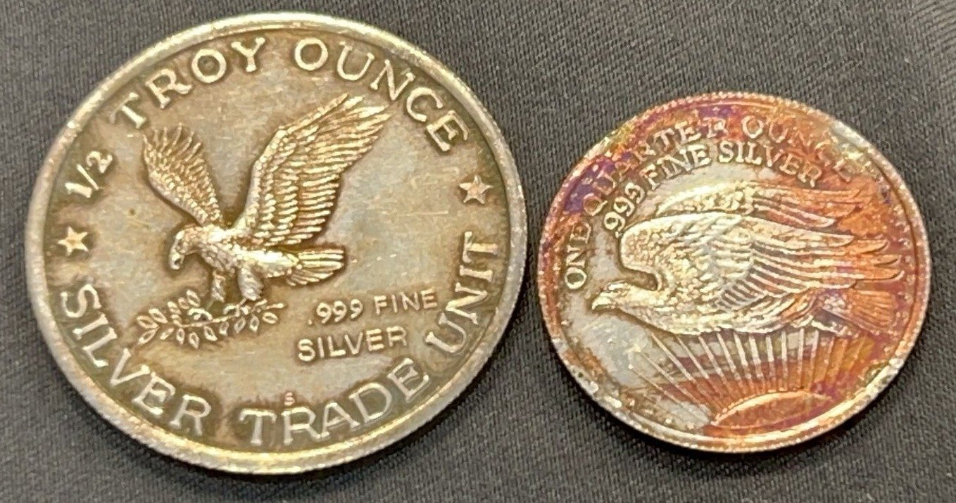 3507 2 Standing Liberty Silver Rounds 1986 - 1/2 Troy Ounce & One Quarter Ounce (no Year)