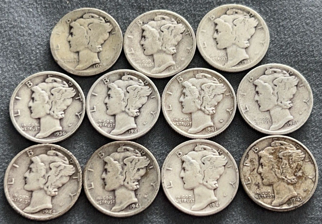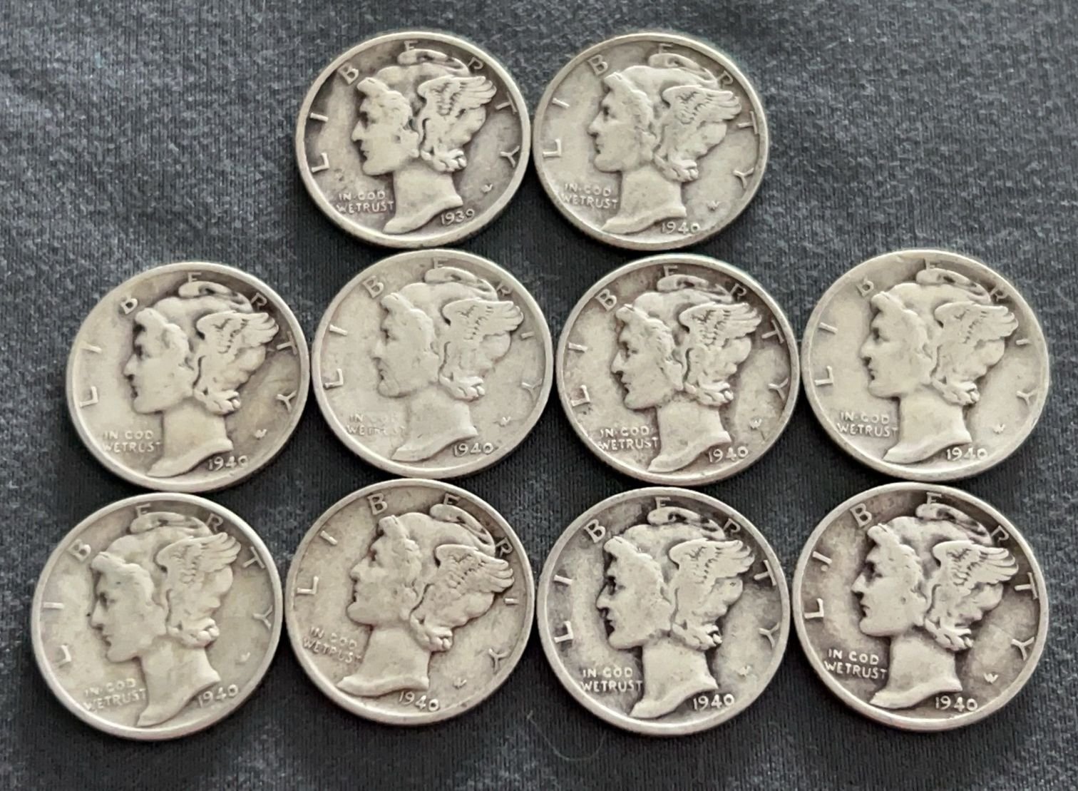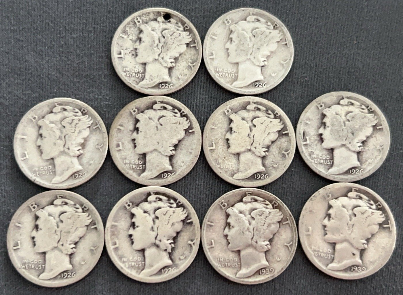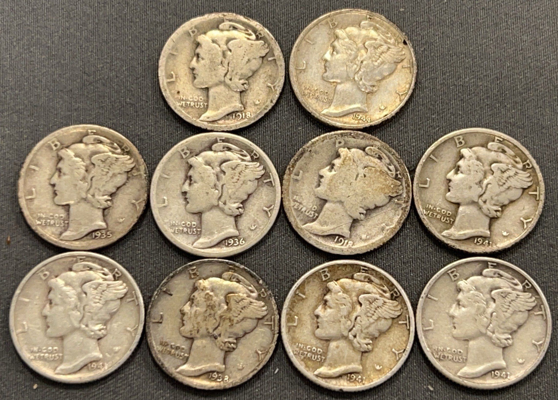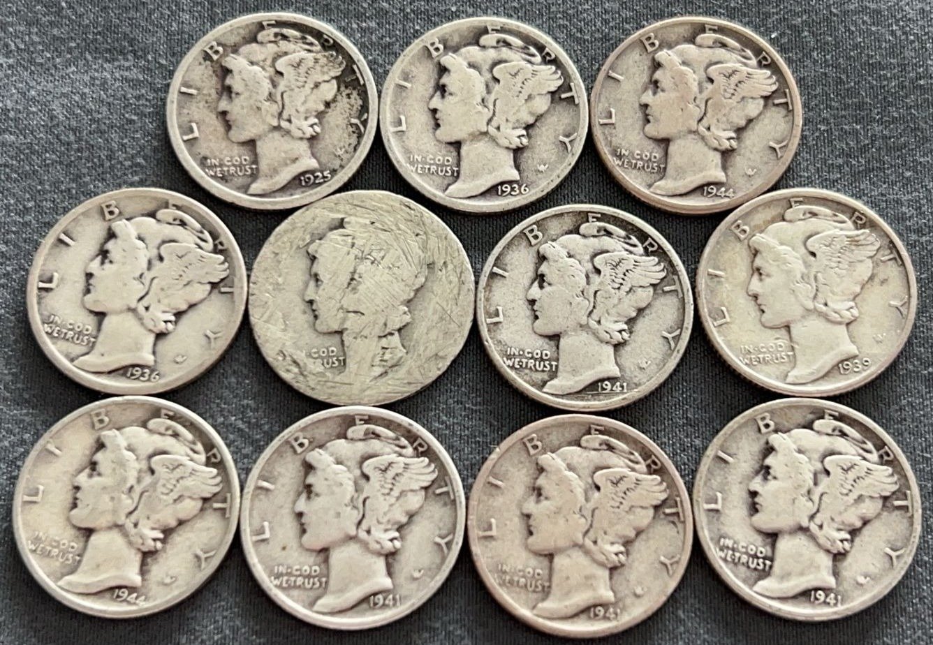 3537 10 Mercury Dimes 1918-1944