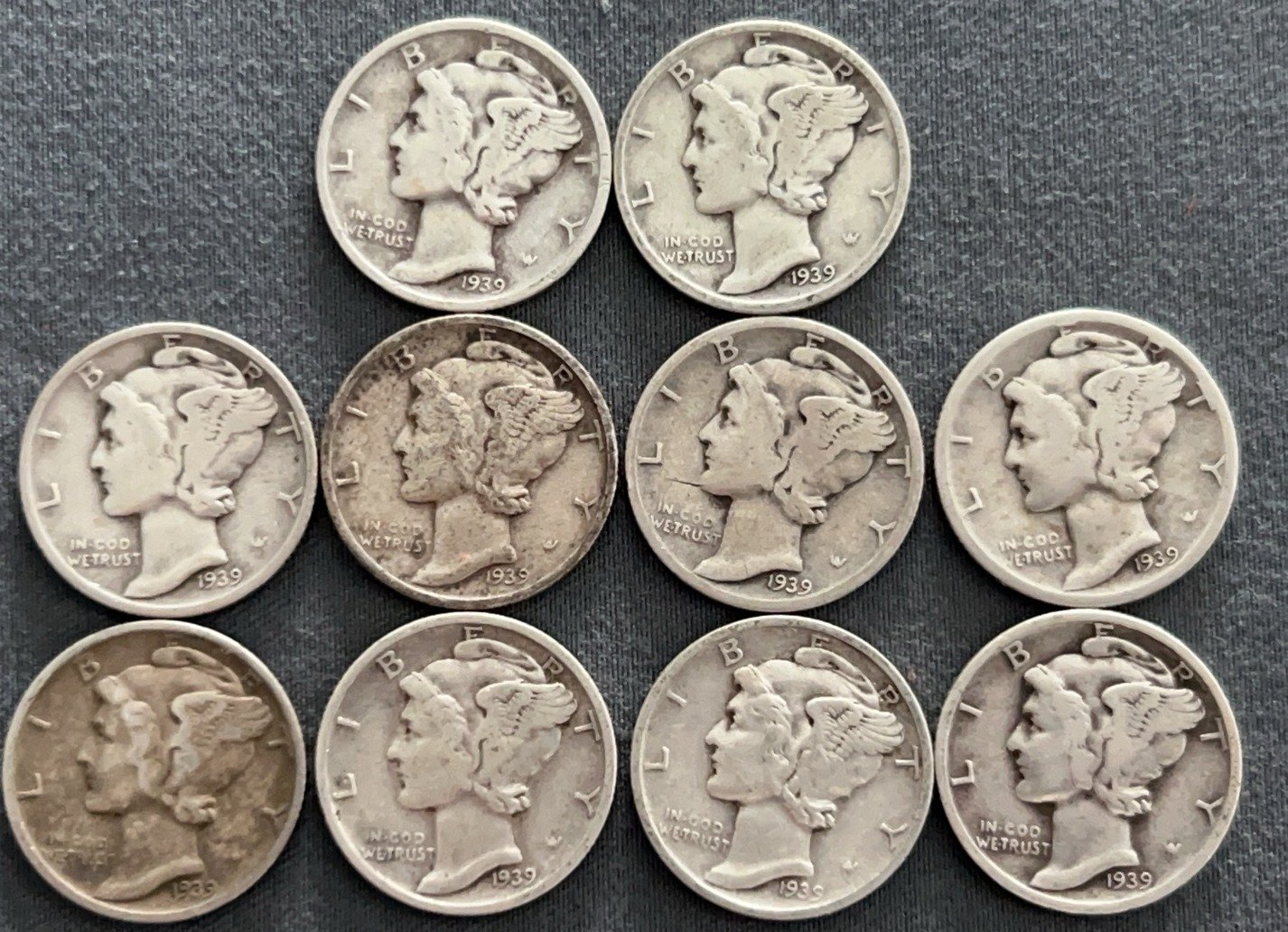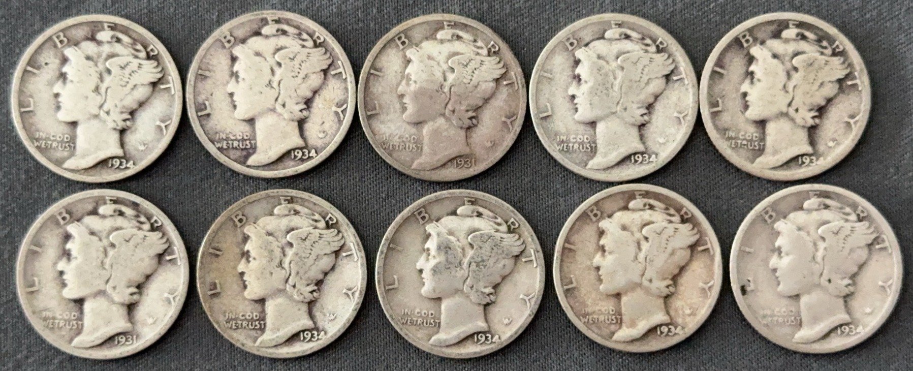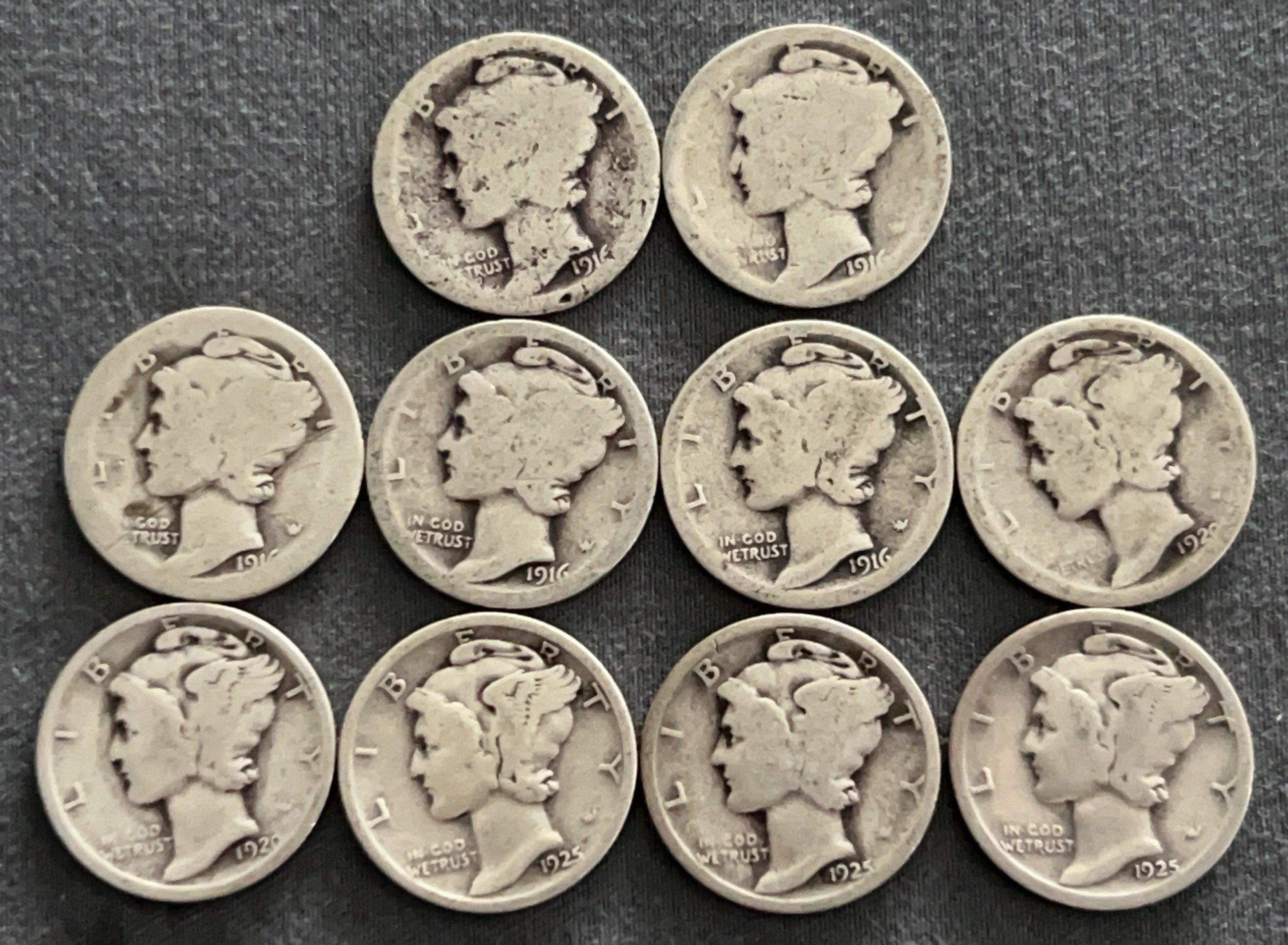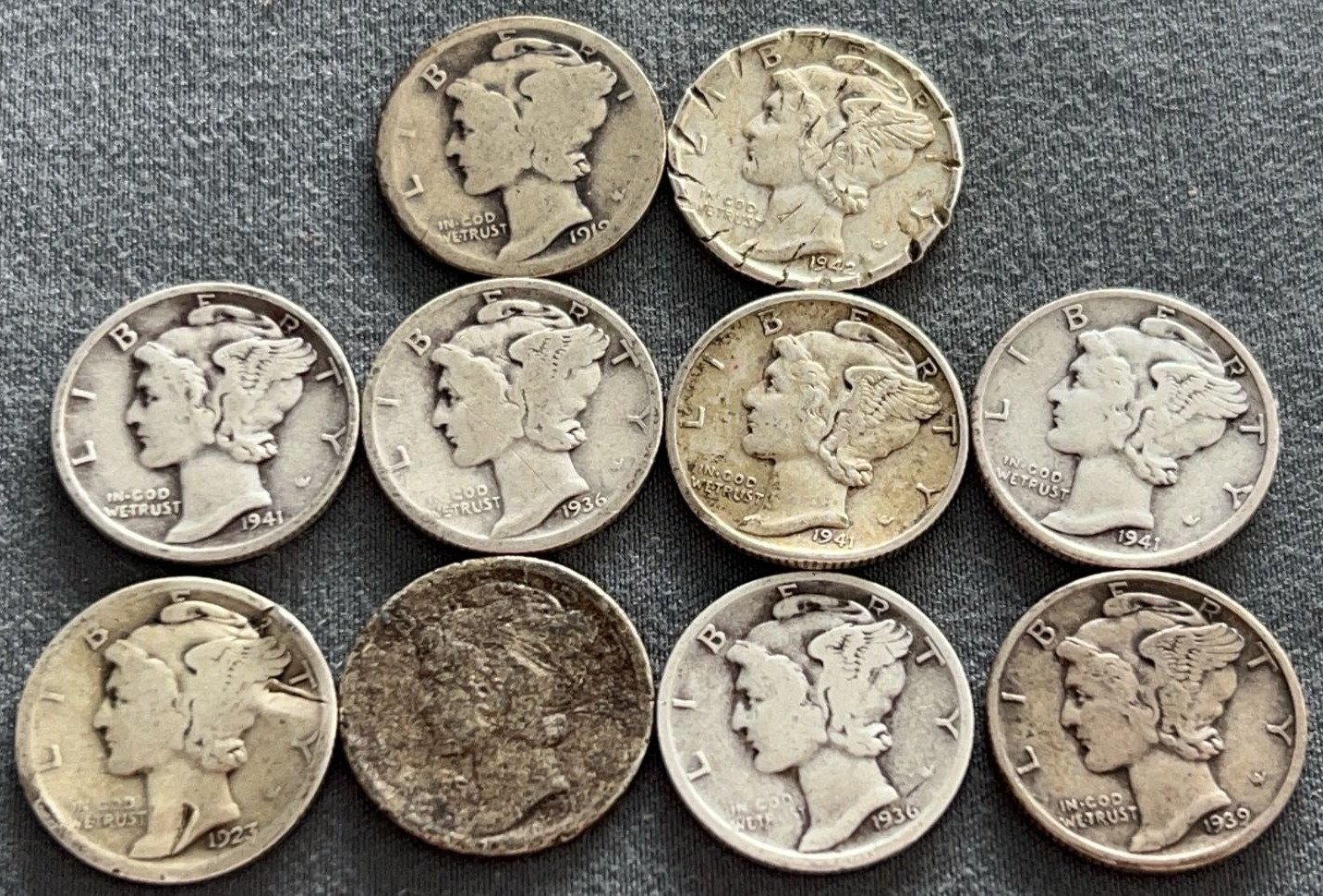 3537 10 Mercury Dimes 1918-1944