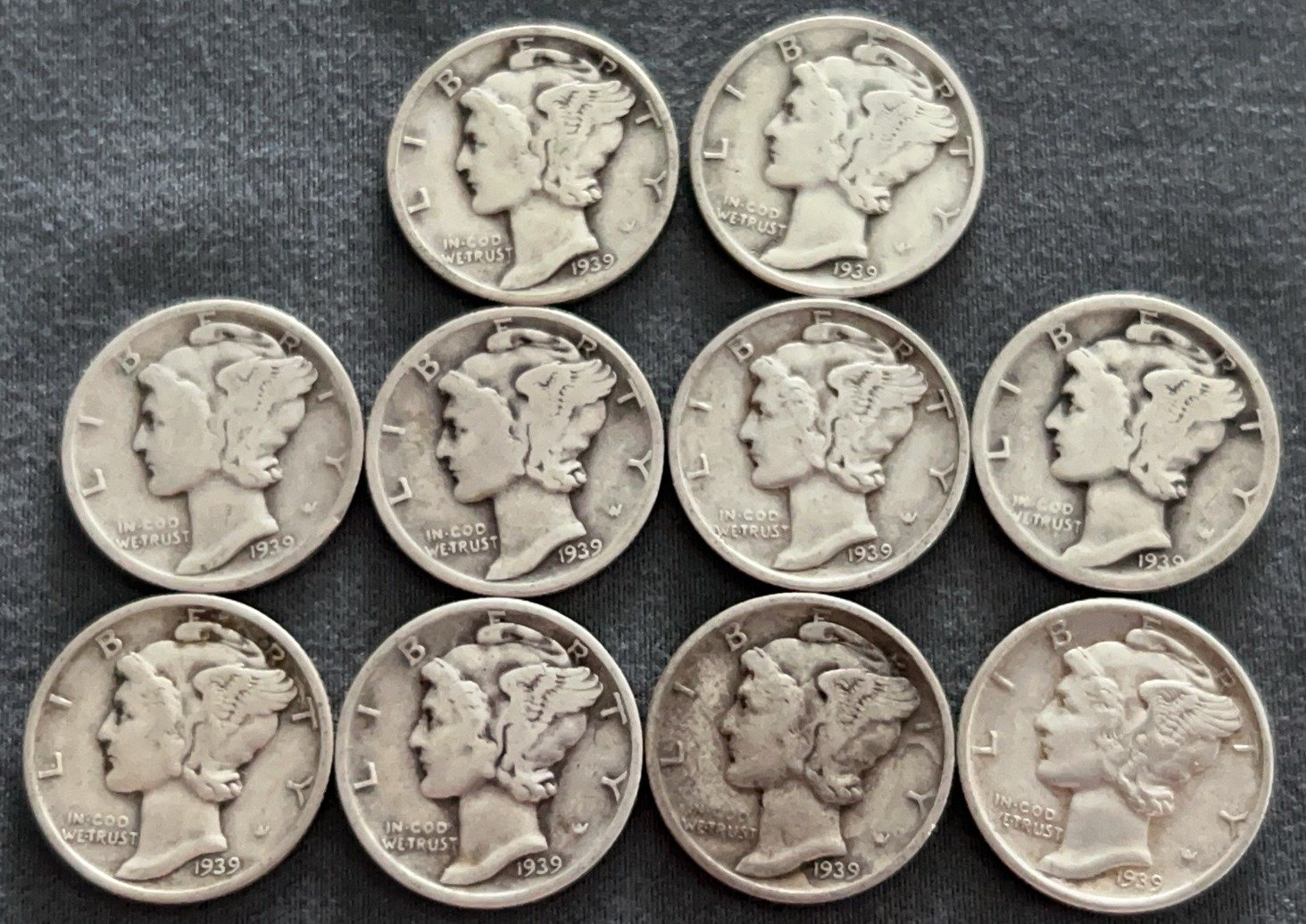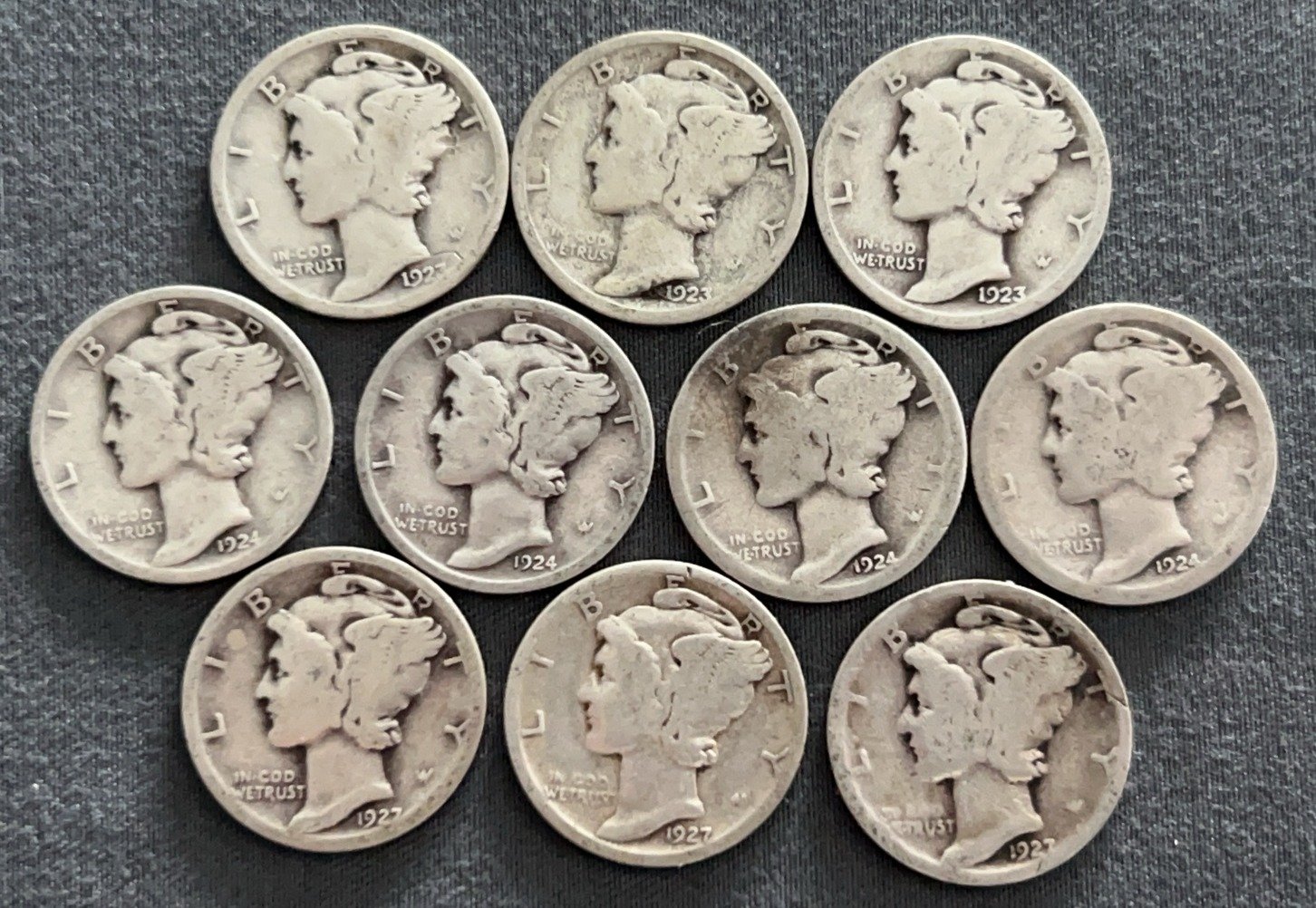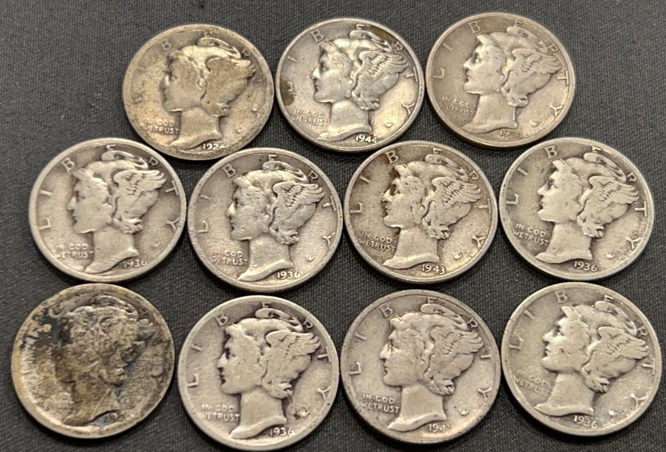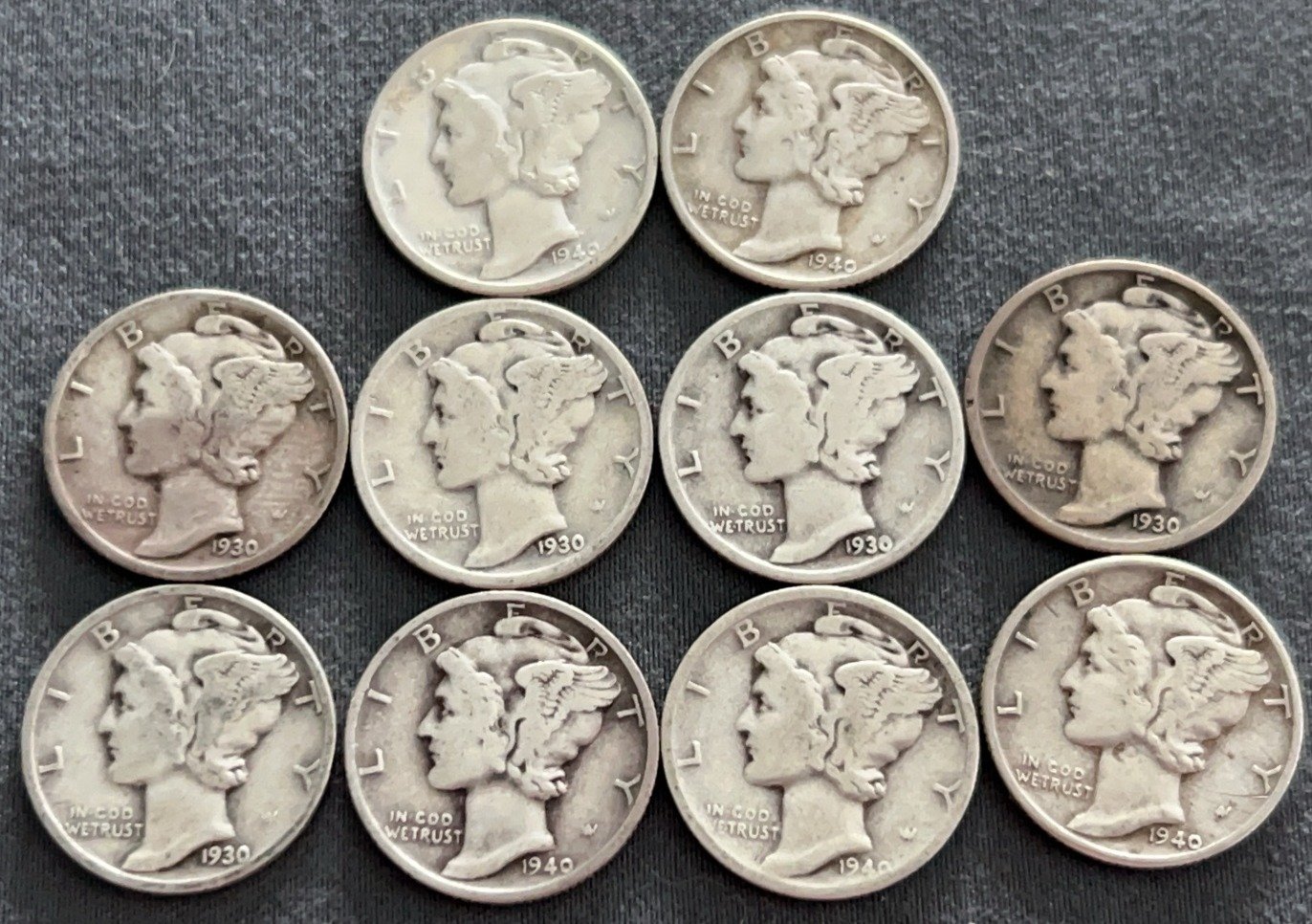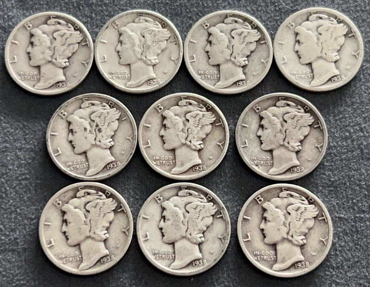 3537 10 Mercury Dimes 1918-1944