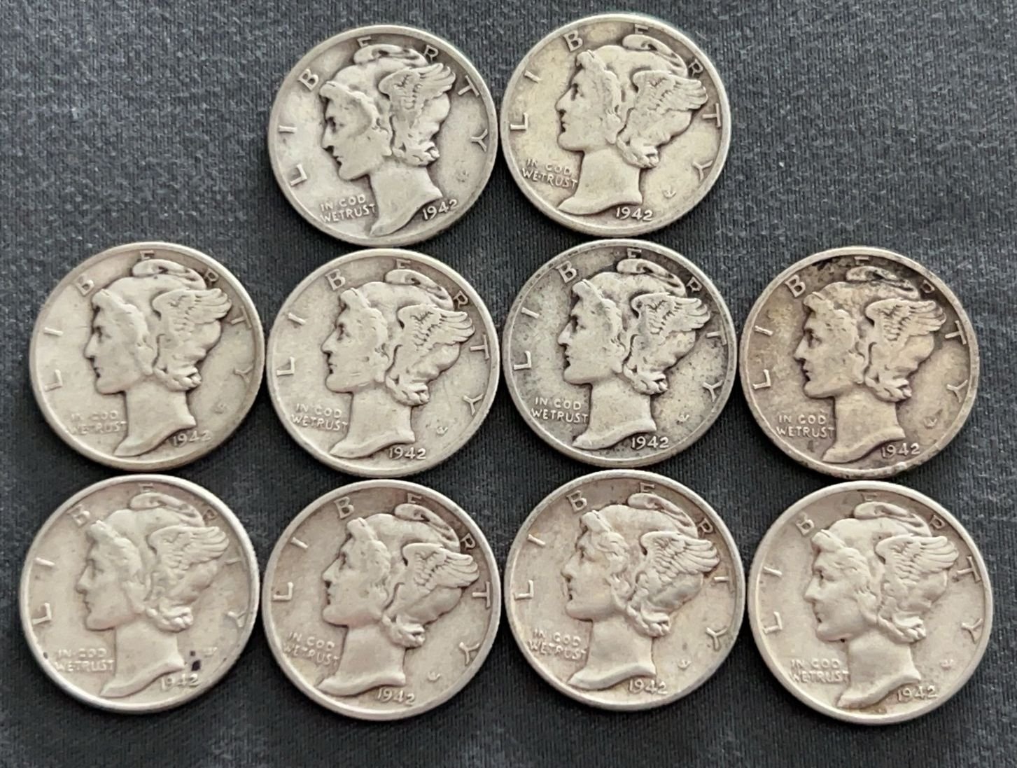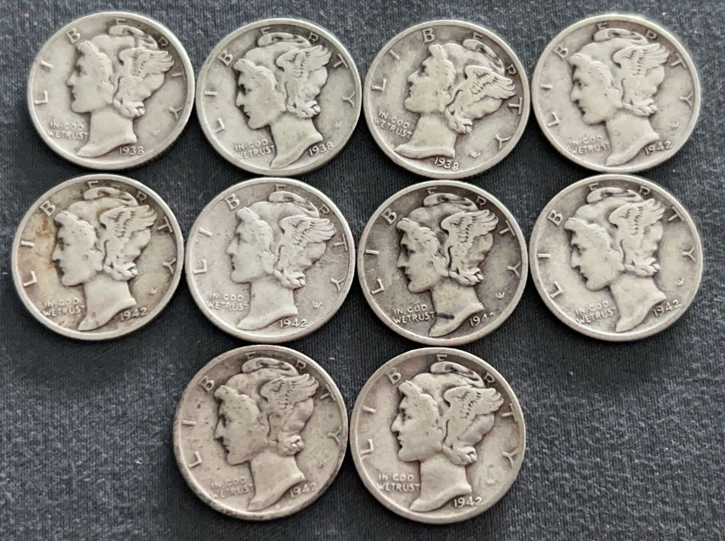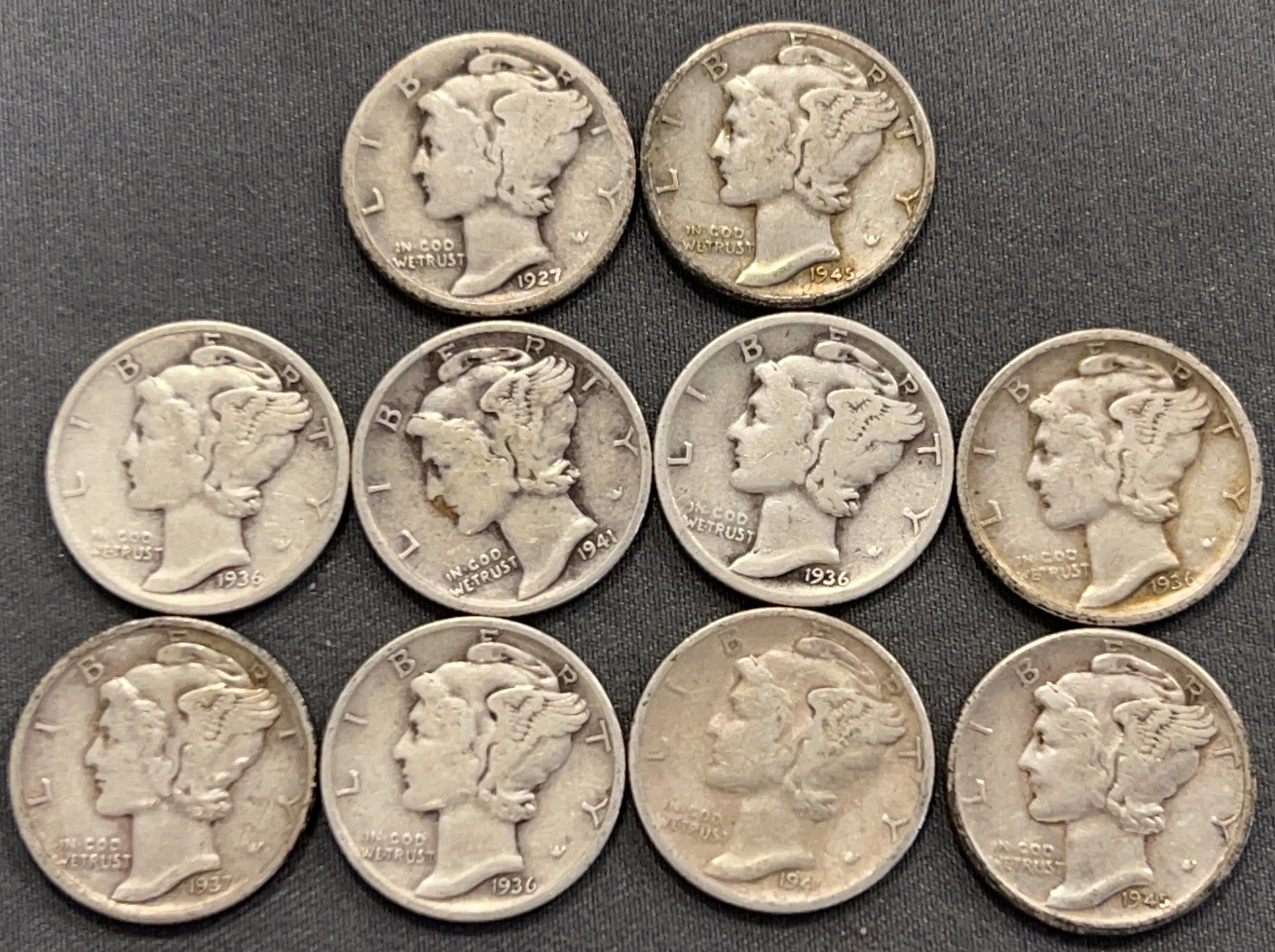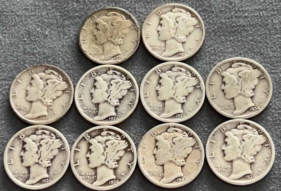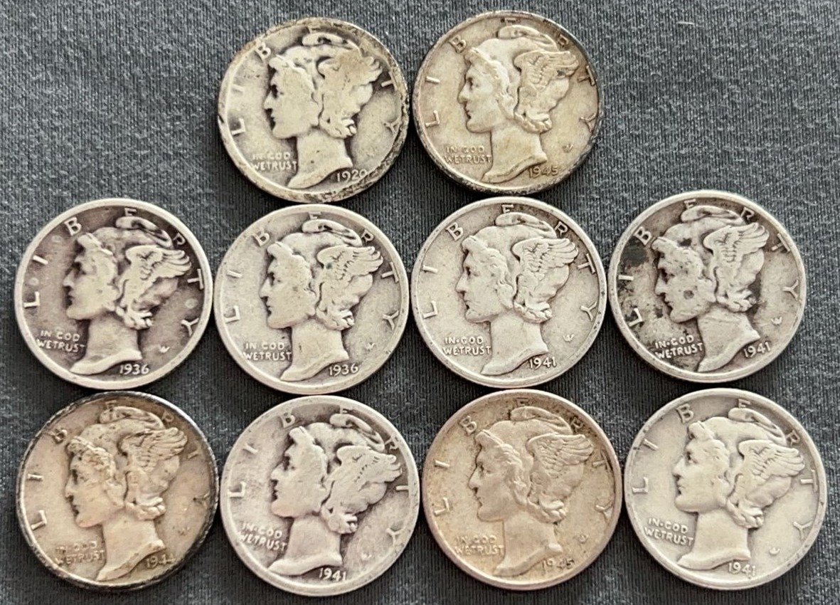 3542 10 Mercury Dimes 1927-1945