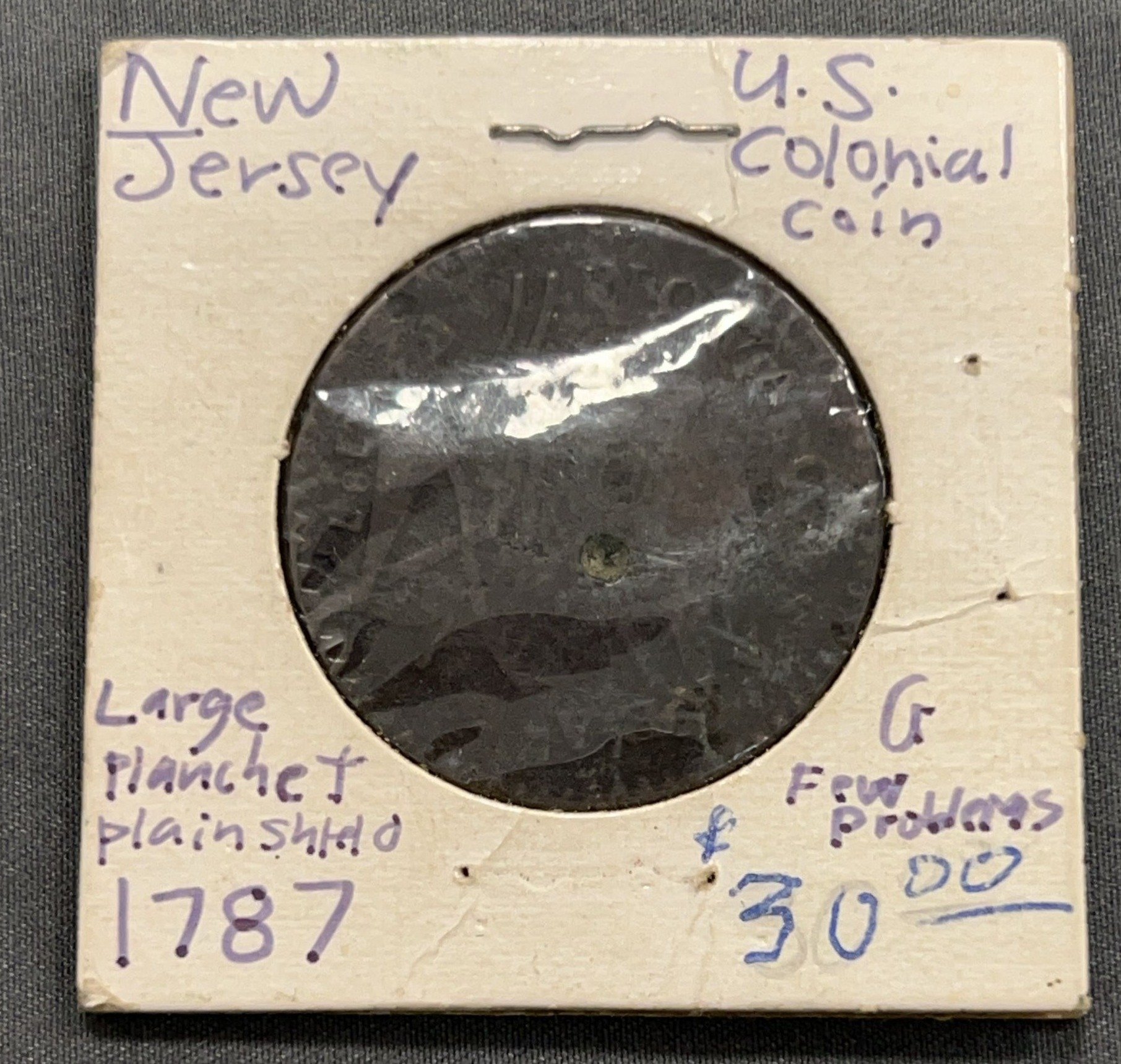 3555 1787 New Jersey U.S. Colonial Large Planchet Plainshield
