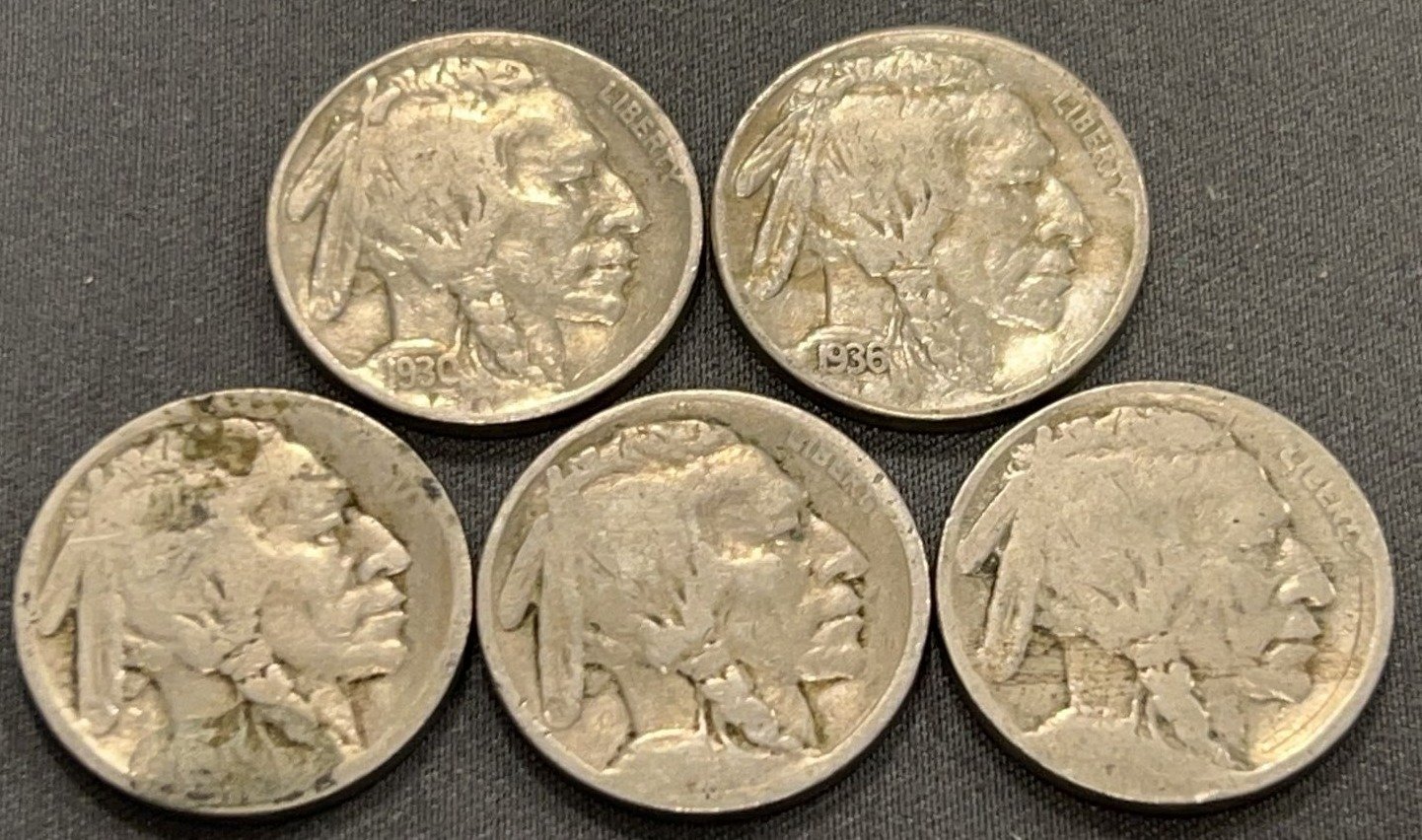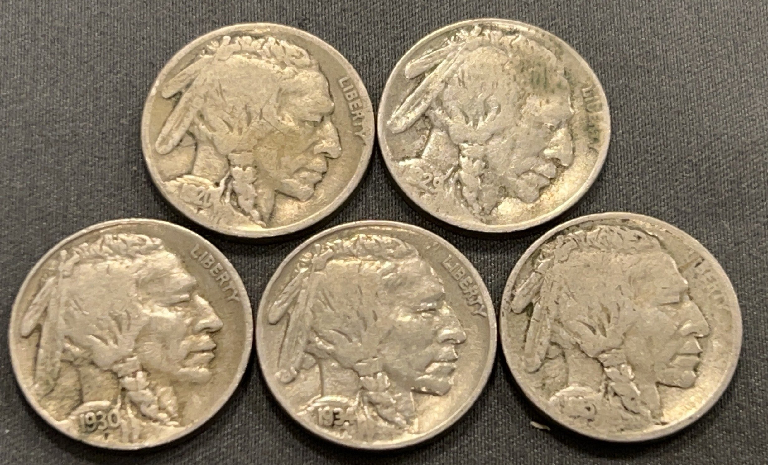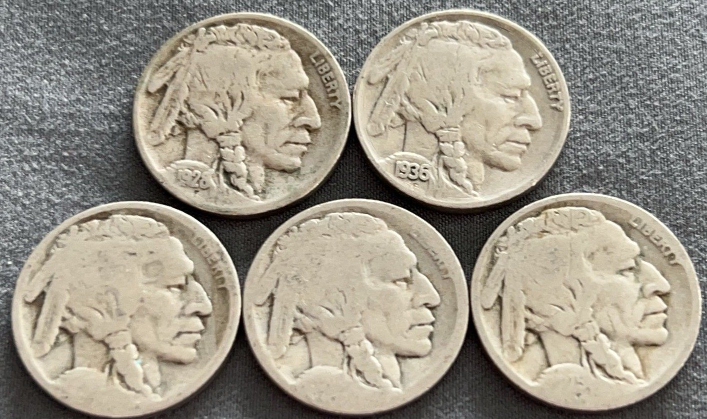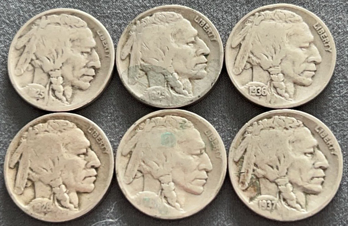 4322 6 Buffalo Nickels 1920-1929