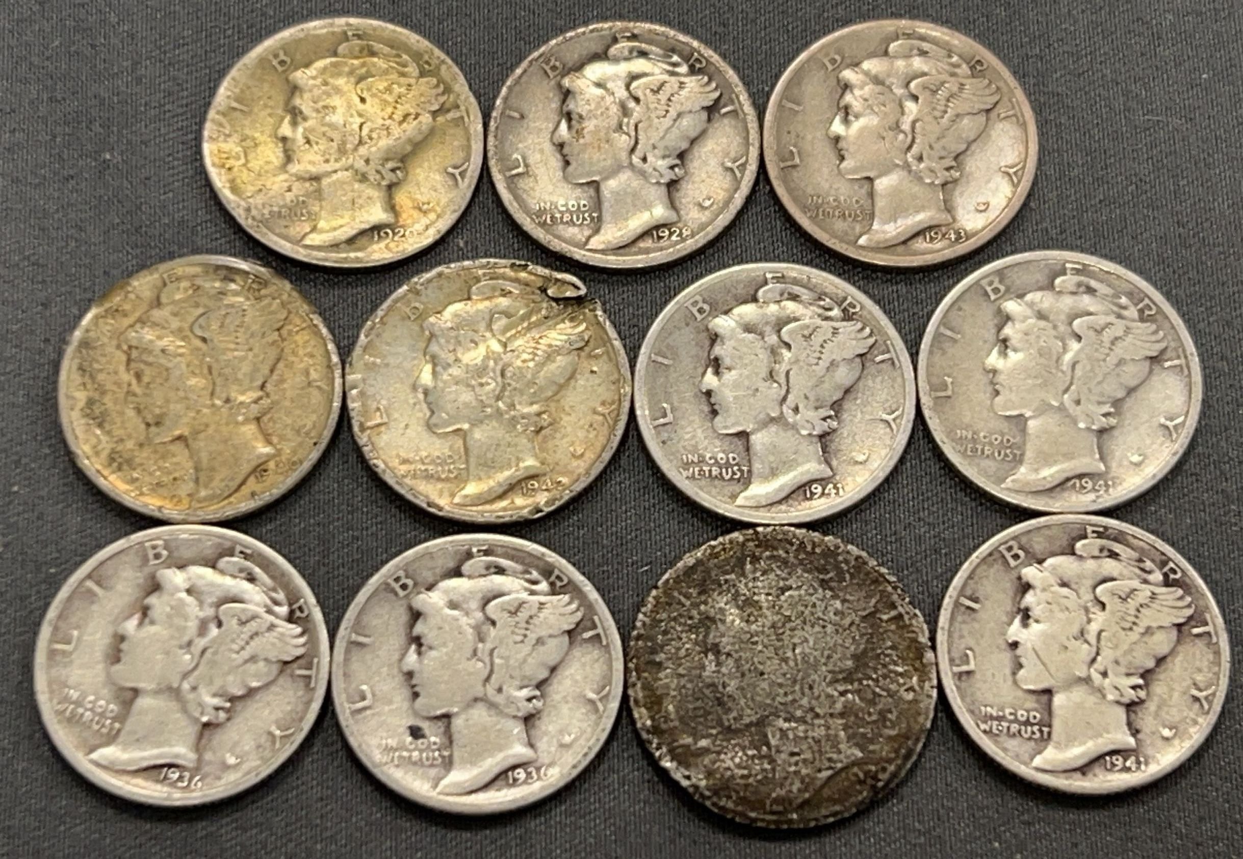 3503 11- Mercury Dimes 1936-1944