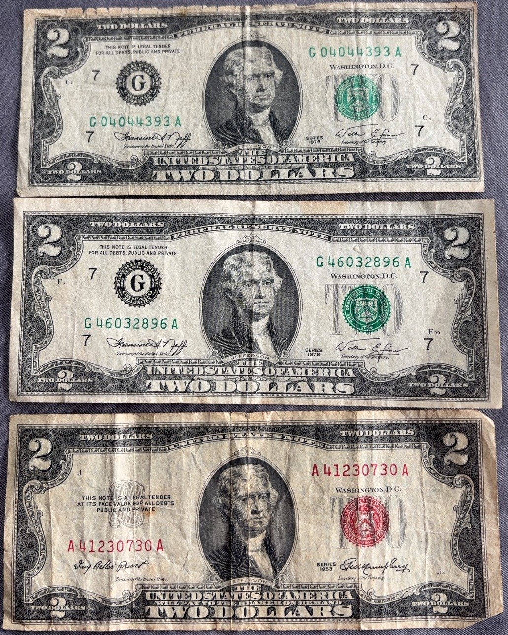 4351 1953 Red Seal $2 Note & 1957-A $1 Silver Certificate
