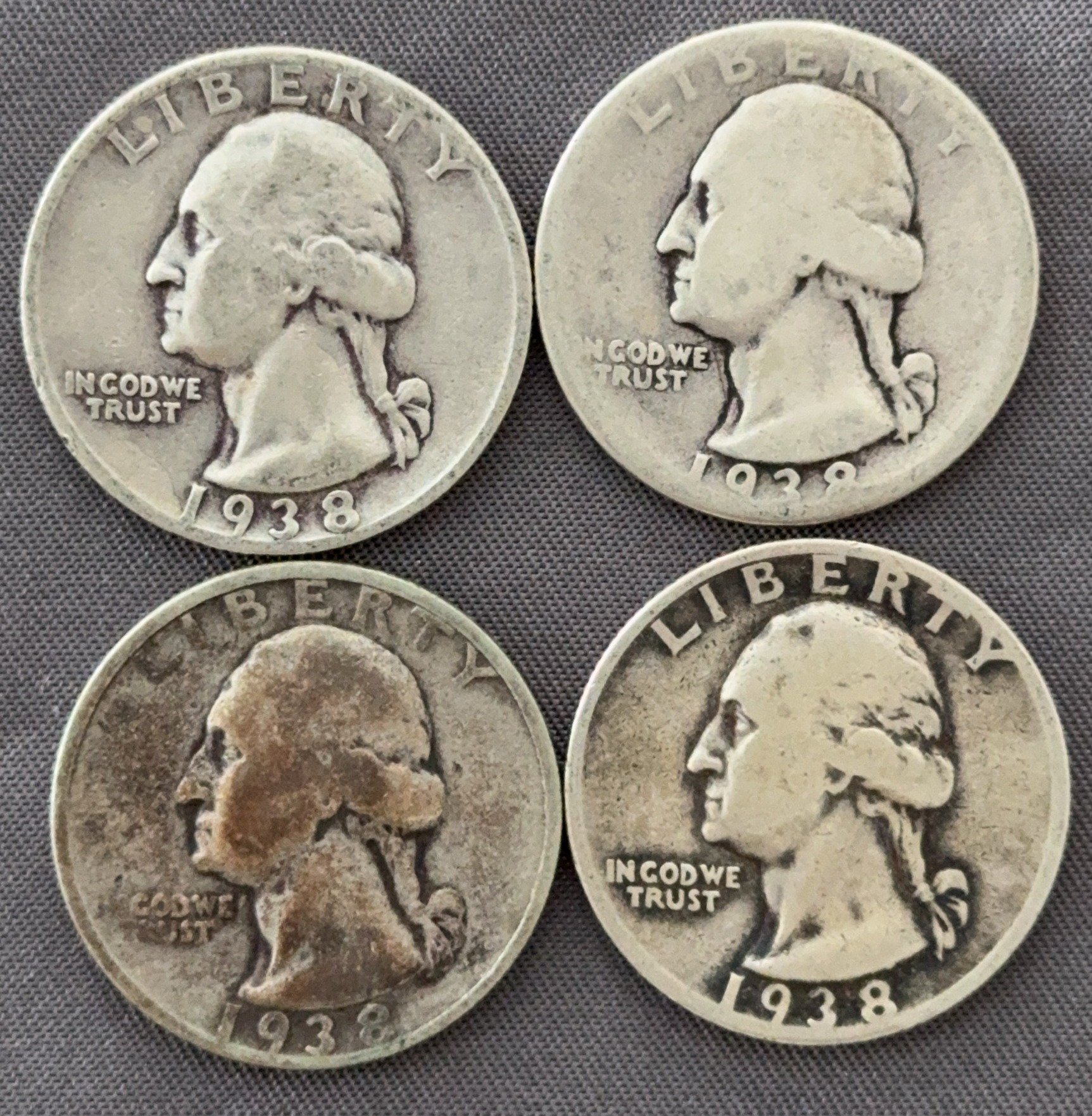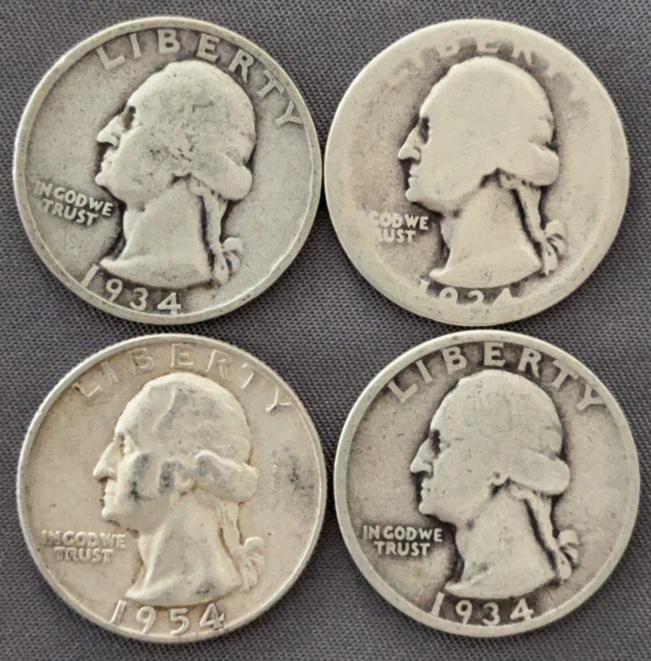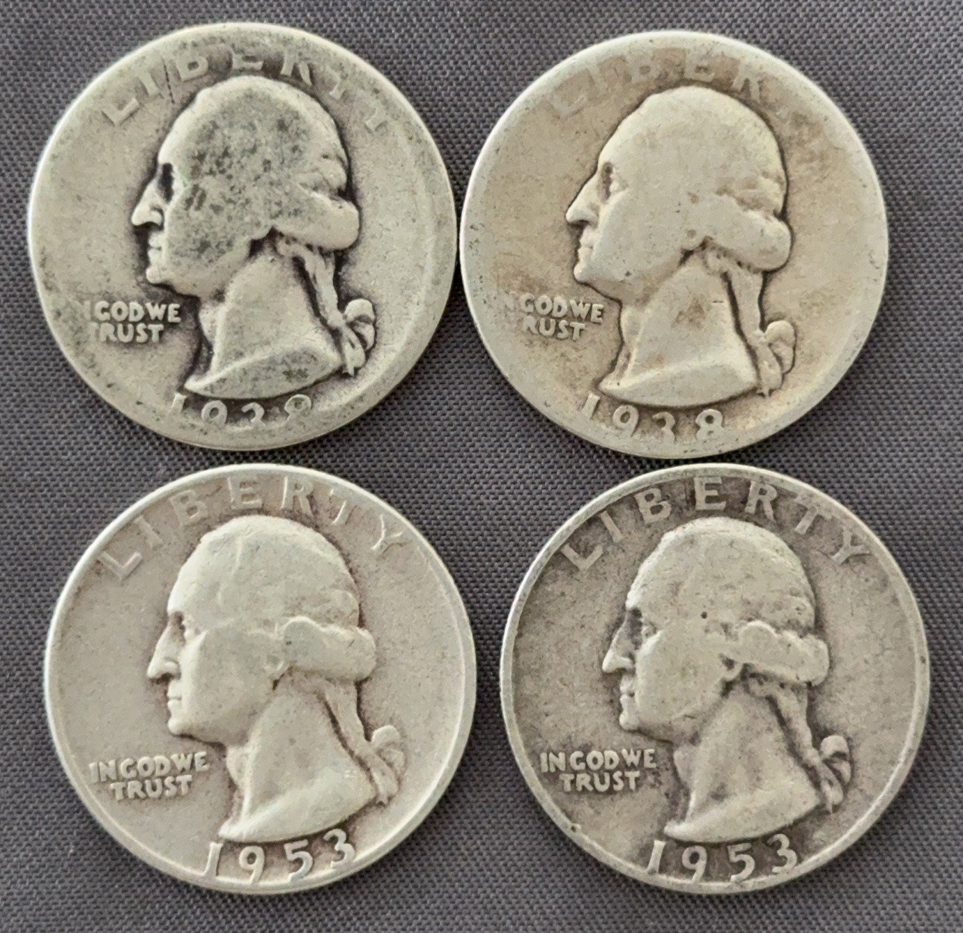 3544 4 Washington Quarters 1936-1962