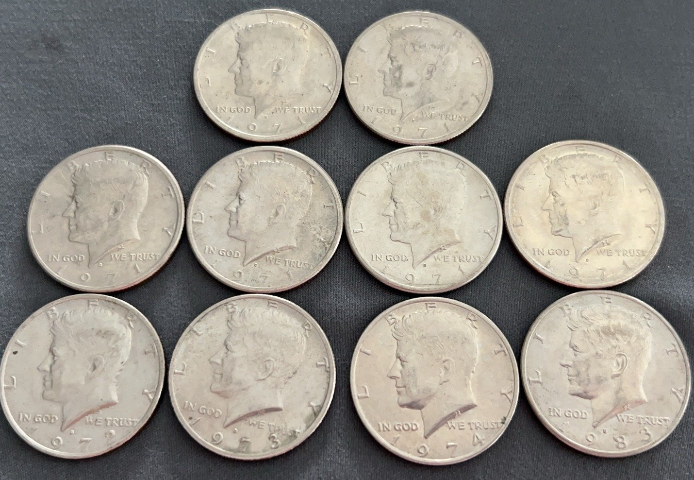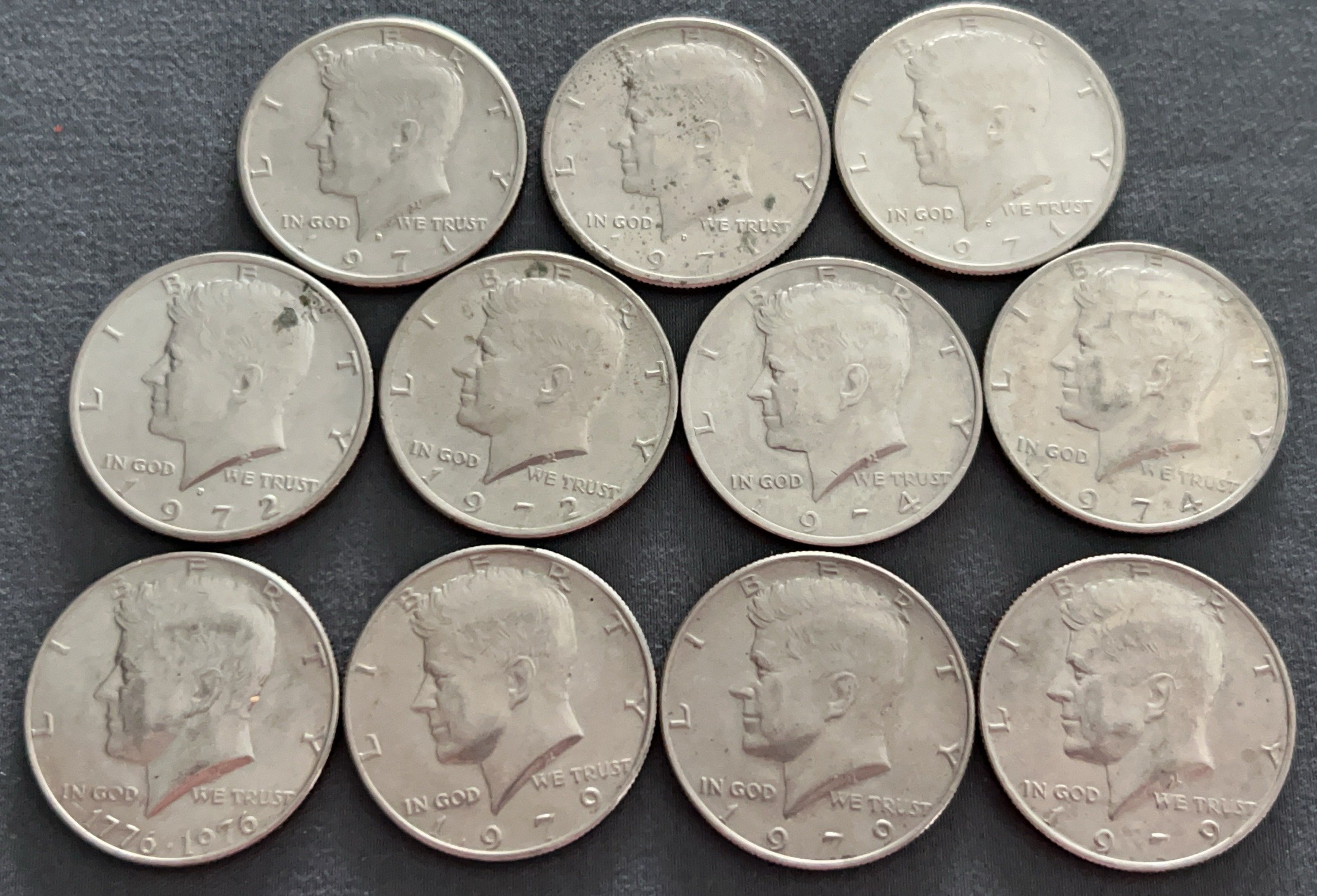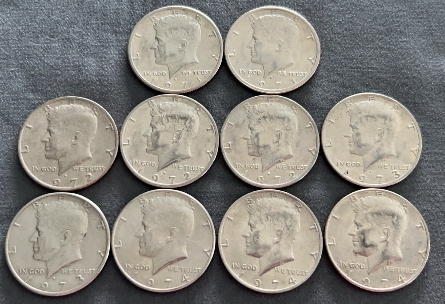 4353 Roll of 20 Kennedy Half Dollars 1971-1974, approximately $10