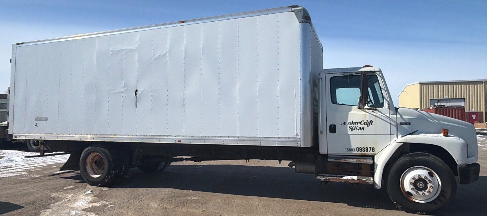 301 1999 Freightliner FL60 25? Box Truck with Caterpillar Engine, Ran When Parked, has title, VIN# 1FV6HJACOXHB46497 - A $25 TITLE FEE WILL BE ADDED TO THE WINNING INVOICE - PICK UP AT ALTERNATE LOCATION IN NEW PARIS, IN